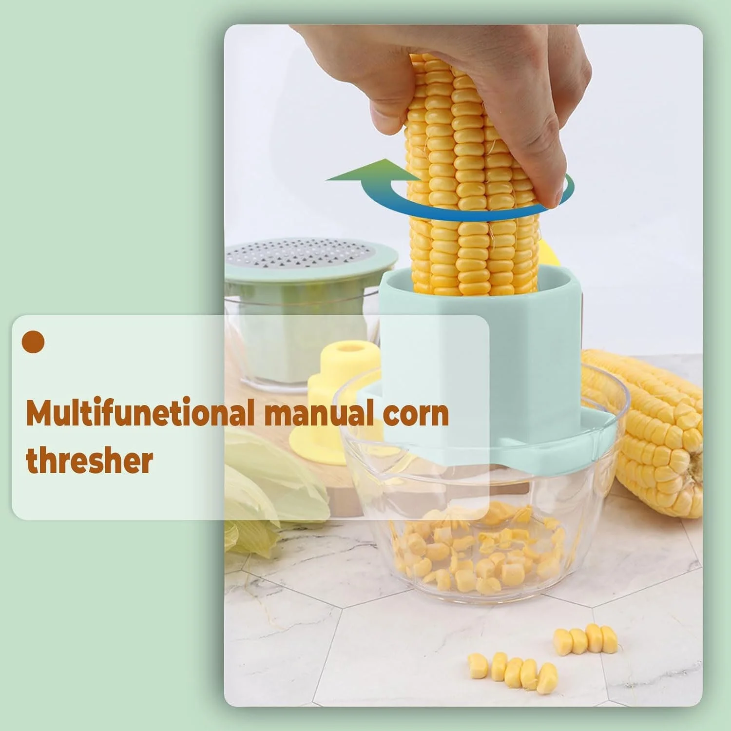 multipurpose manual vegetable grater, handheld kitchen grater, corn kernel stripper, vegetable shredding tool, compact kitchen grater with bowl, manual food preparation tool, kitchen prep grater, grater for vegetables and fruits, storage bowl grater combo, easy food shredding tool, multipurpose handheld grater, cheese and veggie grater, compact kitchen gadget