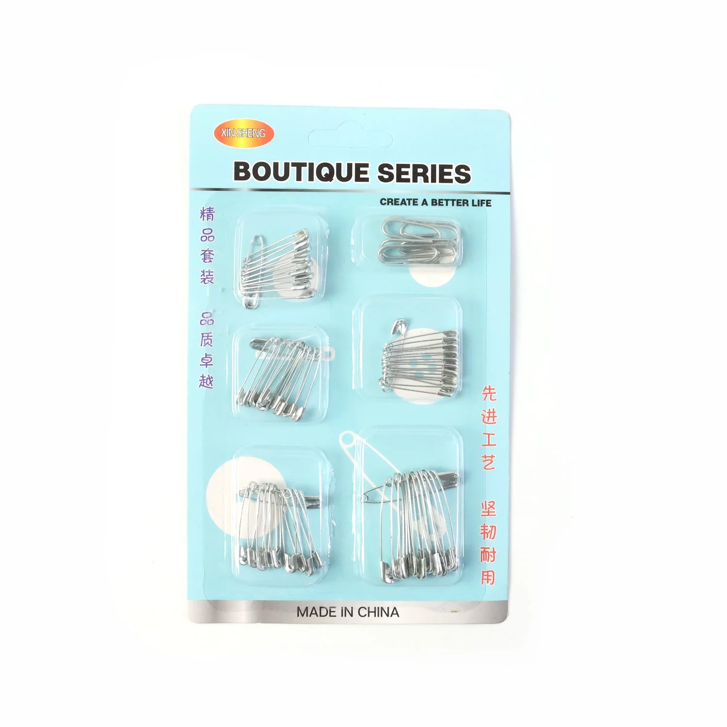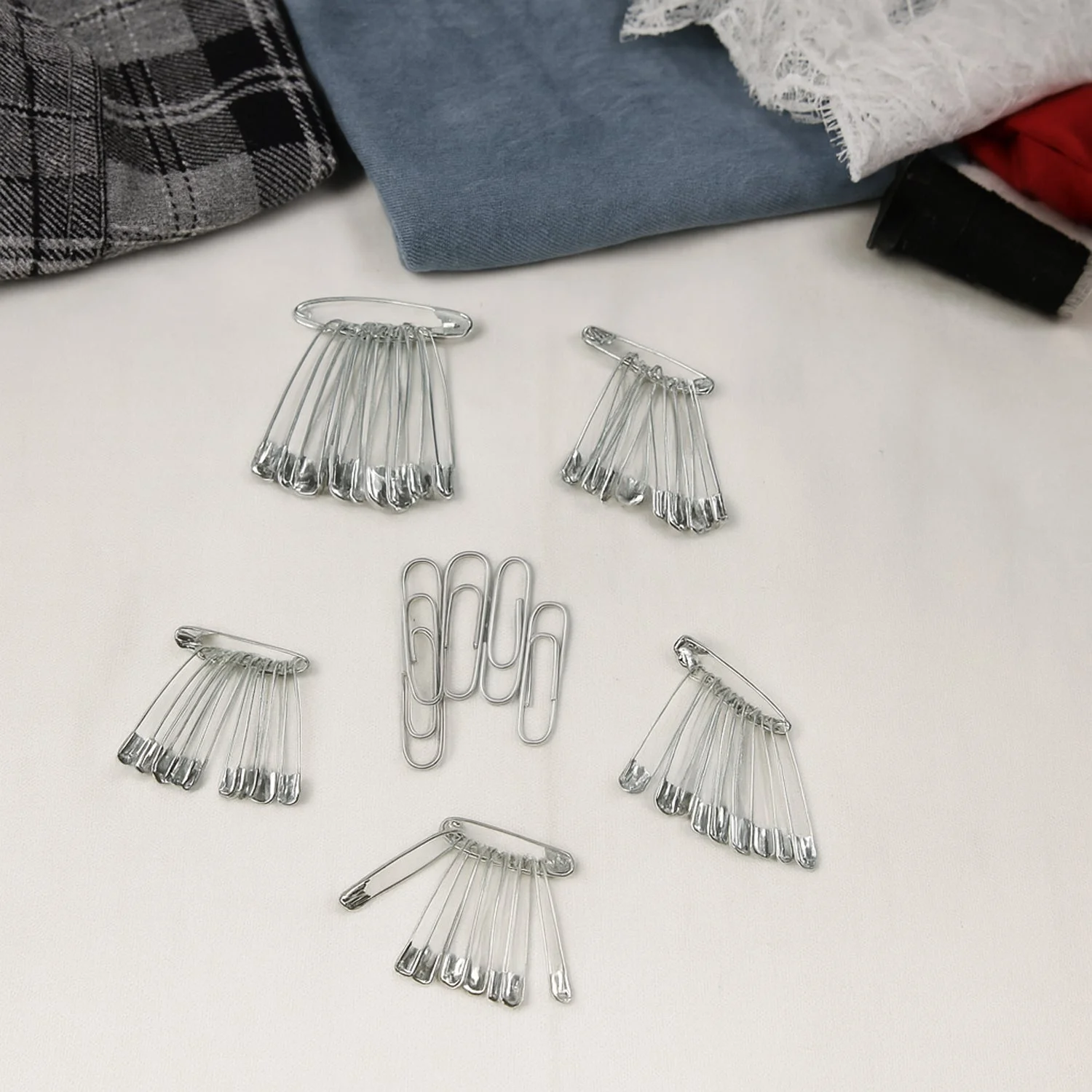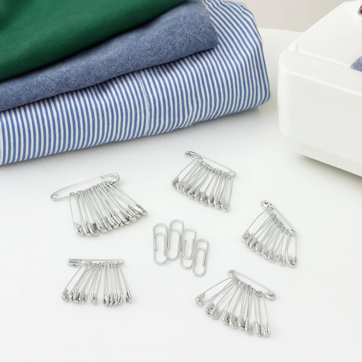 multipurpose metal safety pin set, safety pin assortment kit, stainless steel safety pins, durable safety pins, metal safety pins, clothing repair safety pins, tailoring safety pins, fabric fastening pins, sewing safety pins, daily utility safety pins, rust resistant safety pins, strong safety pins
