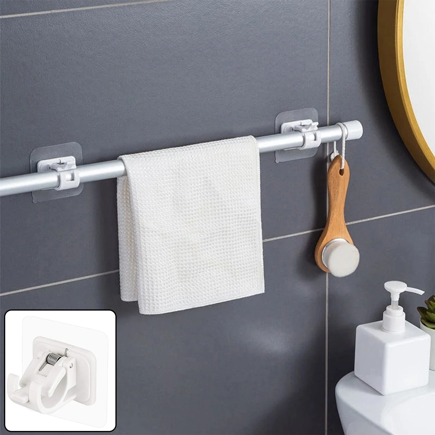 no-drill towel rod, wall-mounted towel holder, adhesive towel rod, multipurpose towel rack, bathroom towel holder, kitchen towel rod, wash area storage solution, dual utility hook towel holder, no-drill wall rack, self-adhesive towel rod, space-saving towel hanger, easy install towel holder, adhesive bathroom rack
