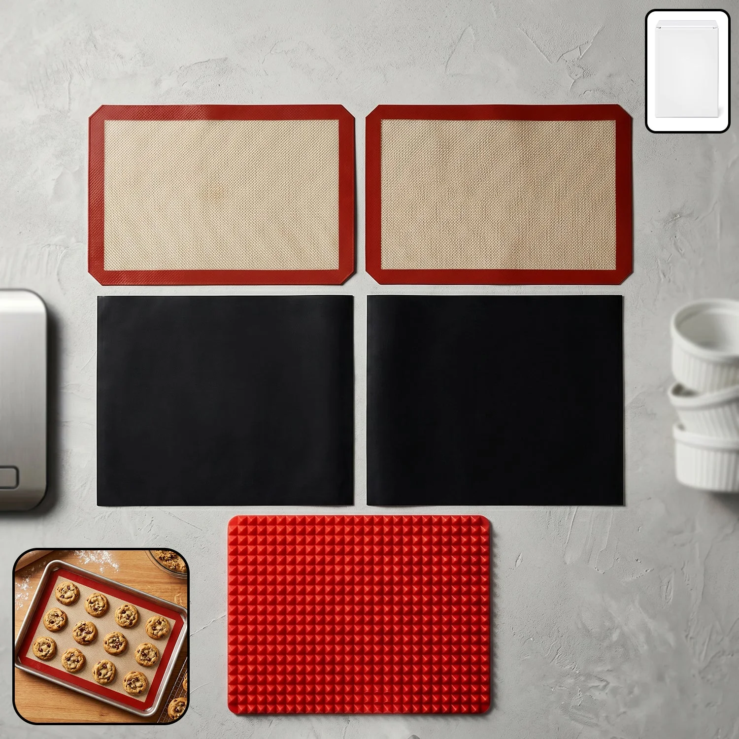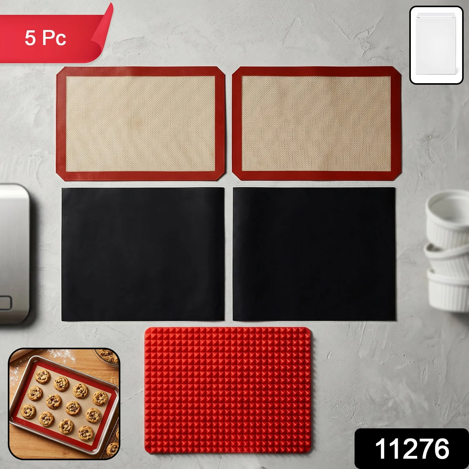 Multipurpose Non-Stick Silicone Baking Mat Set for Oven Cooking Reusable Heat Resistant Baking Sheet Liner for Cookies Bread Pastry Cooking & Kitchen Use 5 Pc