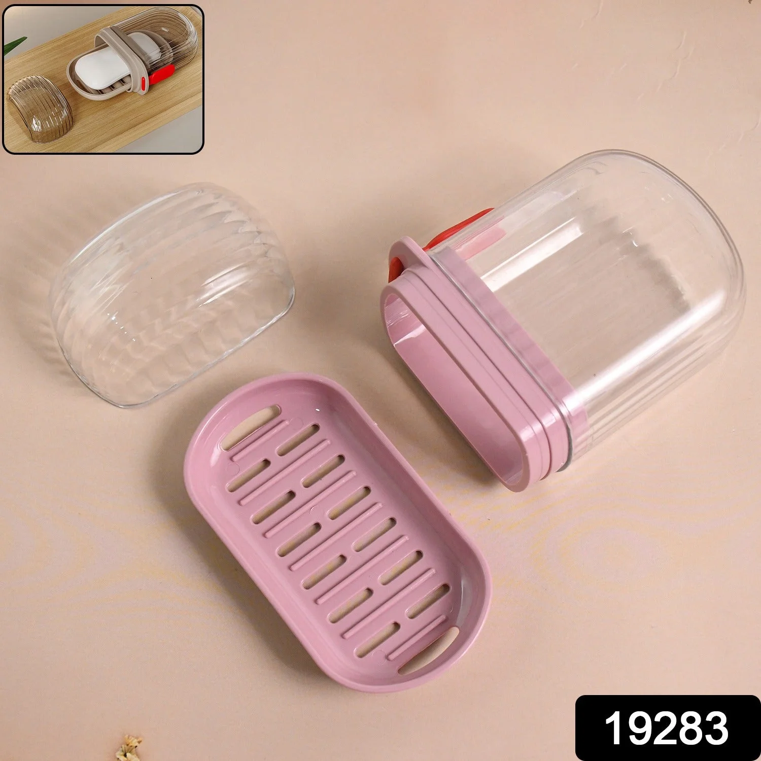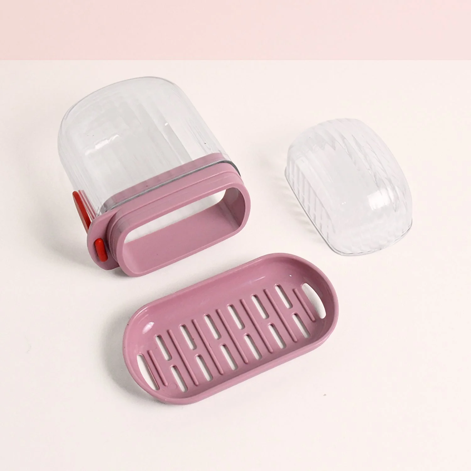Multipurpose Plastic Soap Dish with Transparent Dust-Proof Lid, Detachable Drain Tray, and Wall-Mount Option for Bathroom, Kitchen, and Sink – Pink (1 Pc)