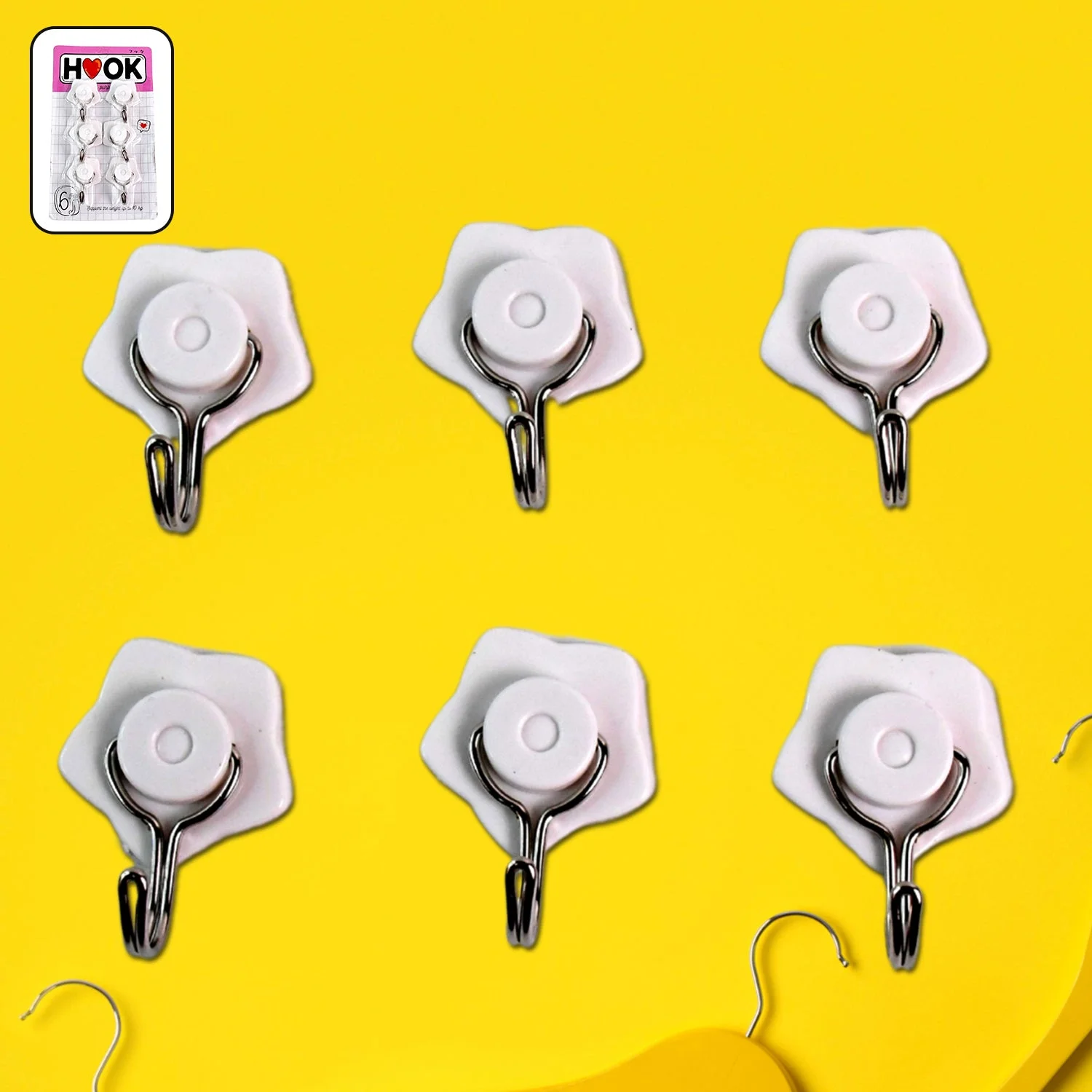 Multipurpose Adhesive Hooks for Walls / Kitchen / Bathroom 6 pc (Multicolor)
