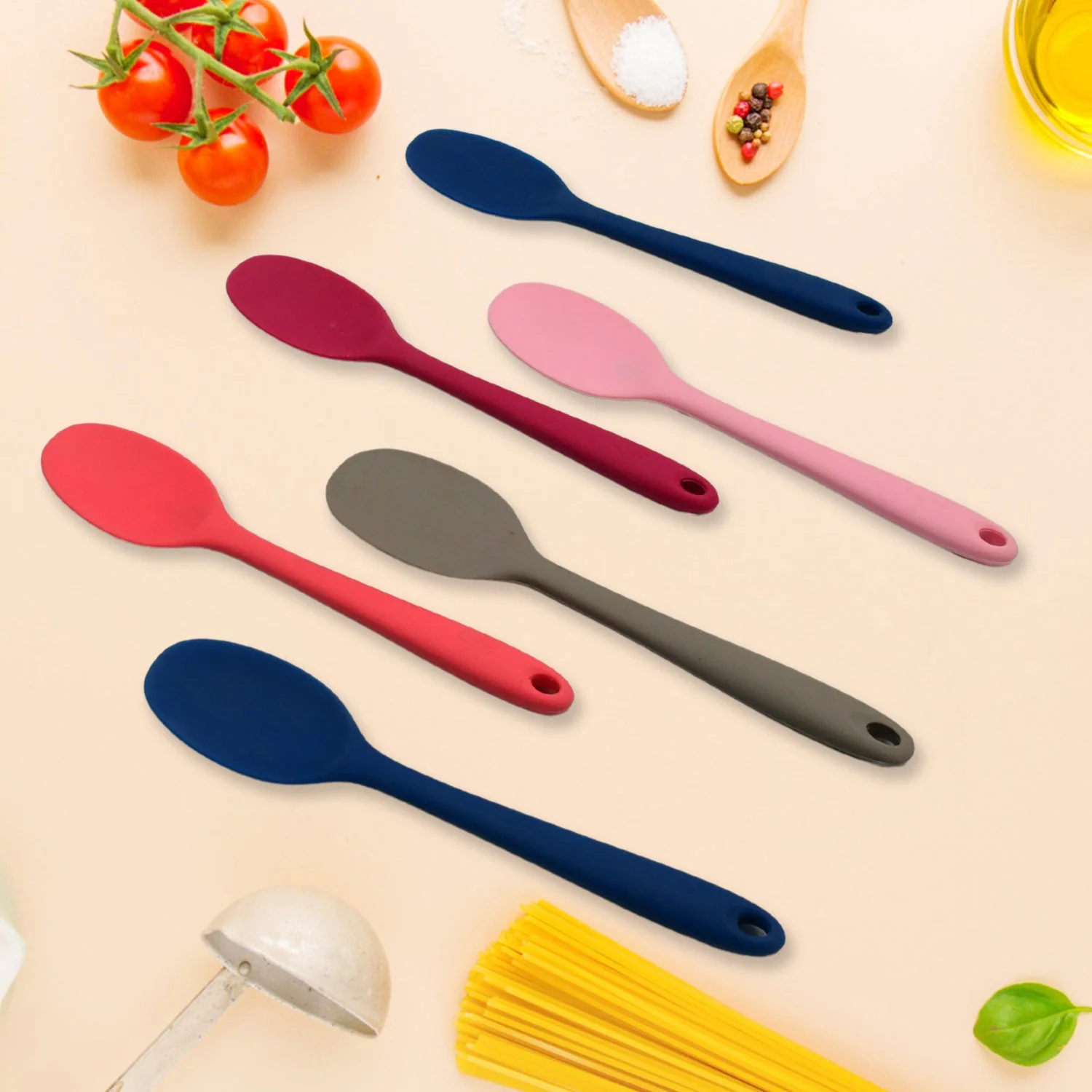 Multipurpose Silicone Spoon, Silicone Basting Spoon Non-Stick Kitchen Utensils Household Gadgets Heat-Resistant Non Stick Spoons Kitchen Cookware Items For Cooking and Baking (6 Pcs Set)