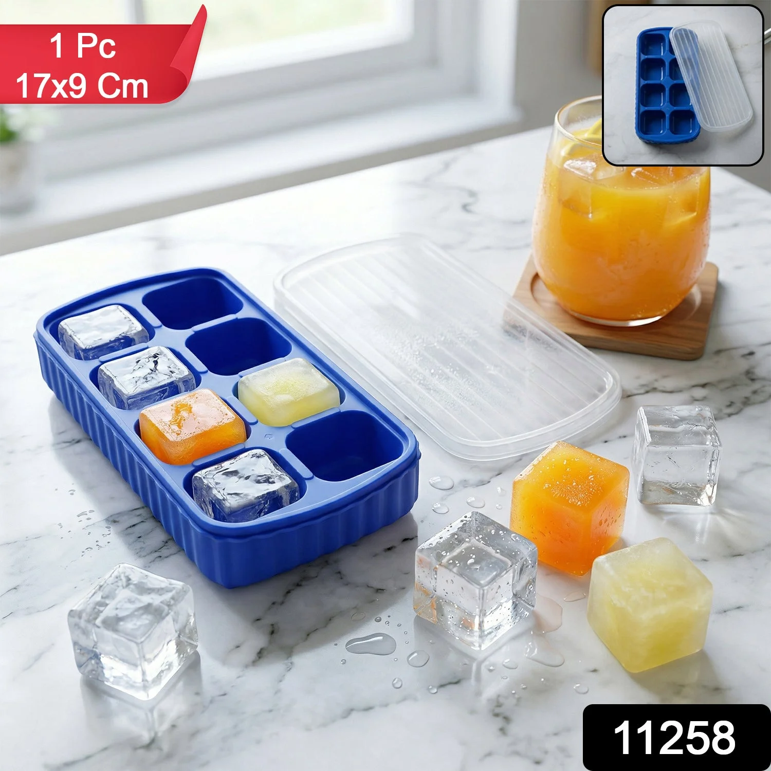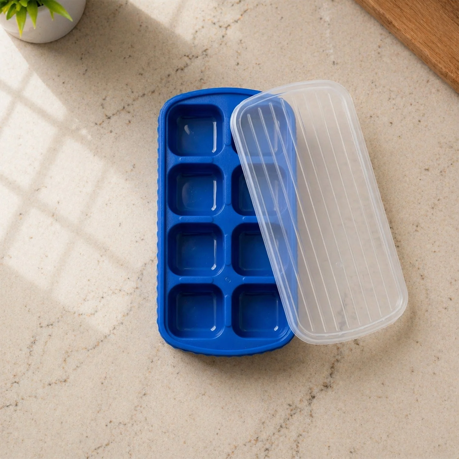 multipurpose ice cube tray, square ice cube mold, ice tray with lid, reusable freezer tray, 8 grid ice cube tray, silicone ice cube tray, plastic ice cube mold, juice cube tray, chocolate mold tray, food storage tray, easy release ice tray, freezer ice mold, stackable ice tray with lid, leakproof ice cube tray, small ice cube tray 17x9 cm, compact freezer tray, diy ice cube mold, baby food freezer tray, smoothie cube tray, whiskey ice cubes tray