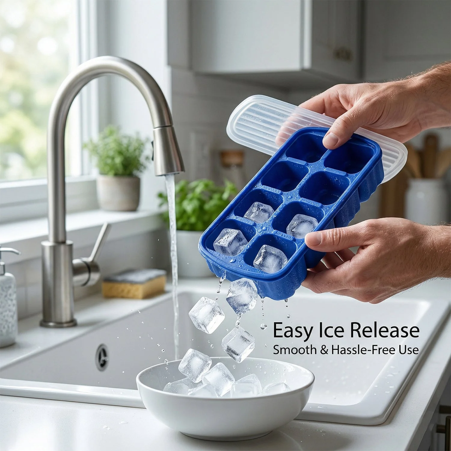 Make ice preparation easy with this ice cube tray with lid designed for convenience and hygiene. This square ice tray creates perfectly shaped cubes while preventing spills and odors in the freezer.