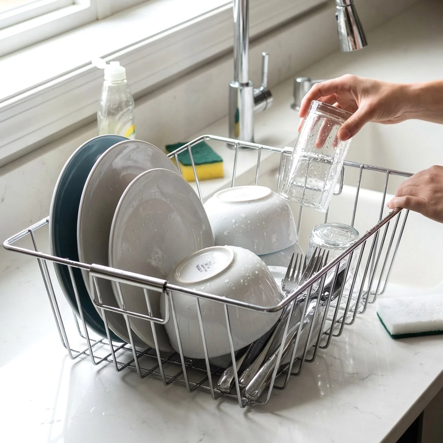 • Spacious basket structure ideal for plates, bowls, and kitchen items
