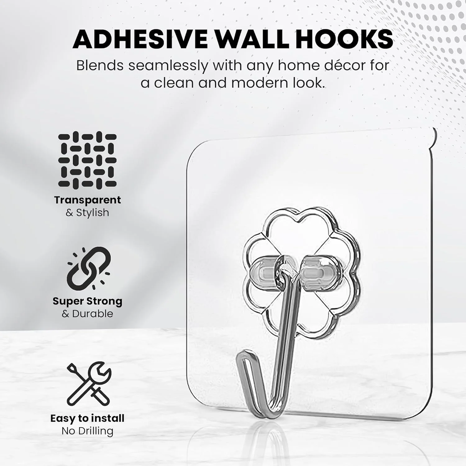 Self Adhesive Heavy Duty Waterproof Transparent Sticky Plastic & Stainless Steel Wall Hooks