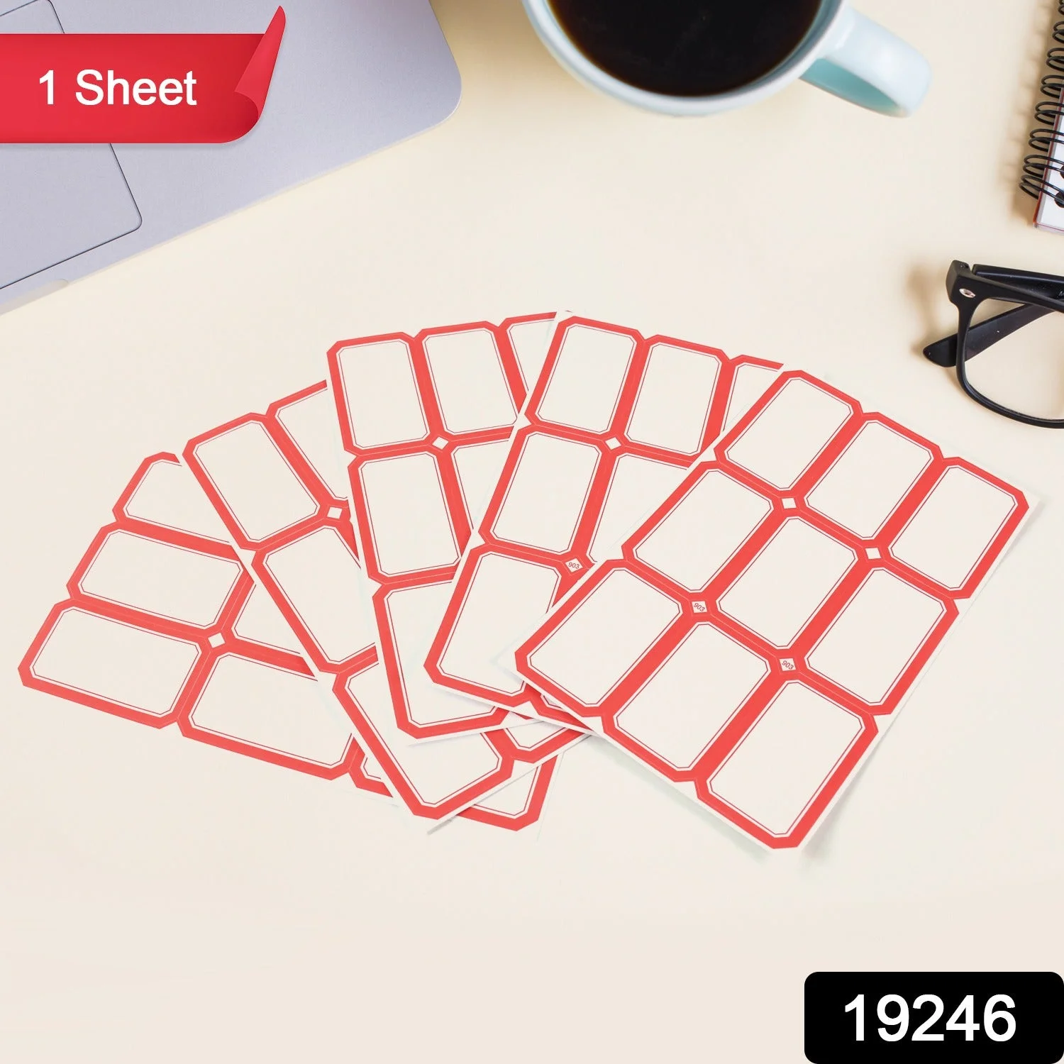 Multipurpose Blank Label Sticker Sheets – Red Border Self-Adhesive Writable Stickers for Bottles, Containers, Jars, Files, Gifts, and Organizers – Durable Office & Home Labeling Tags – Pack of Sheets (1 Sheet)