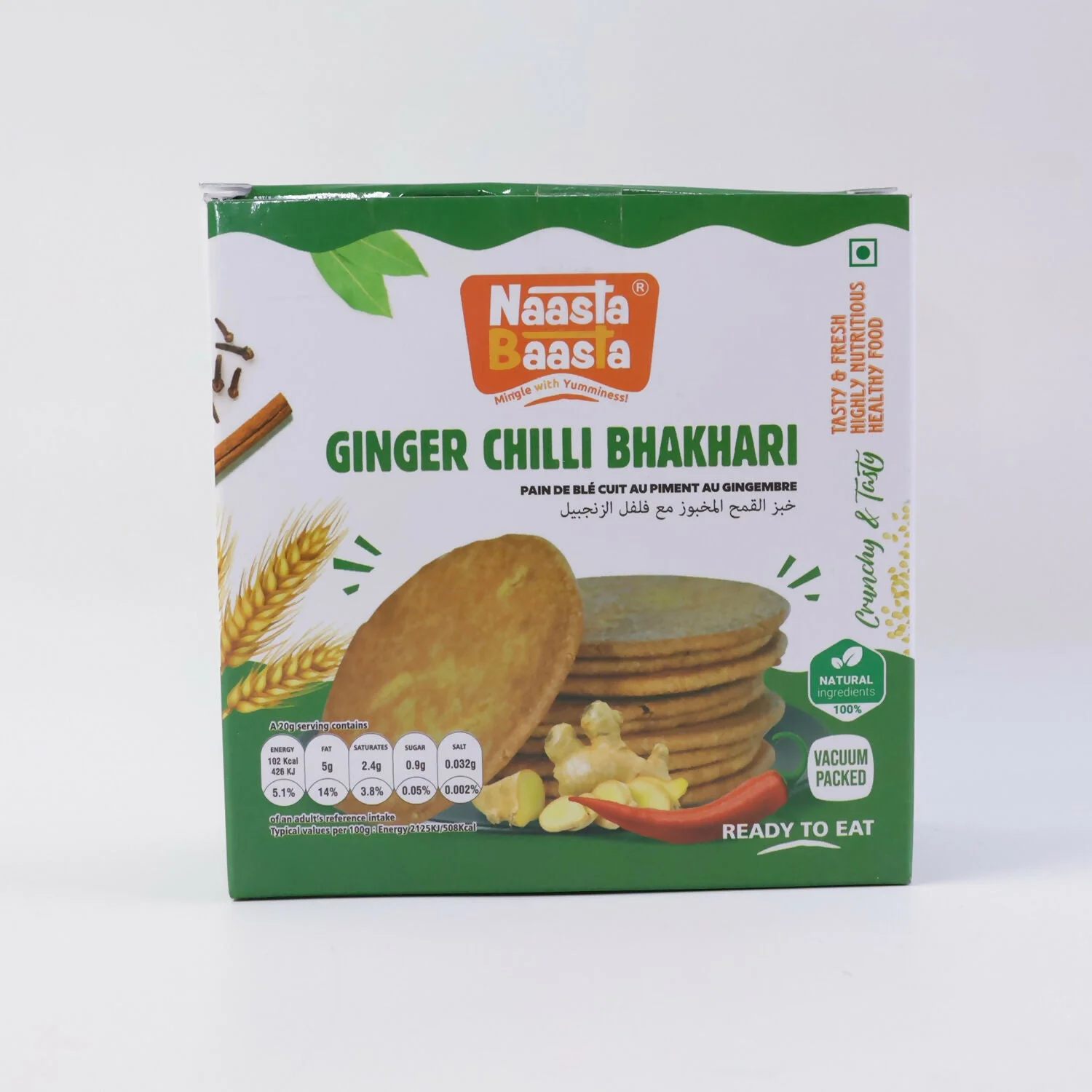 Naasta Baasta Ginger Chilli Bhakhari is a spicy & fresh ready to eat snack crafted for those who love bold flavors with a healthy twist