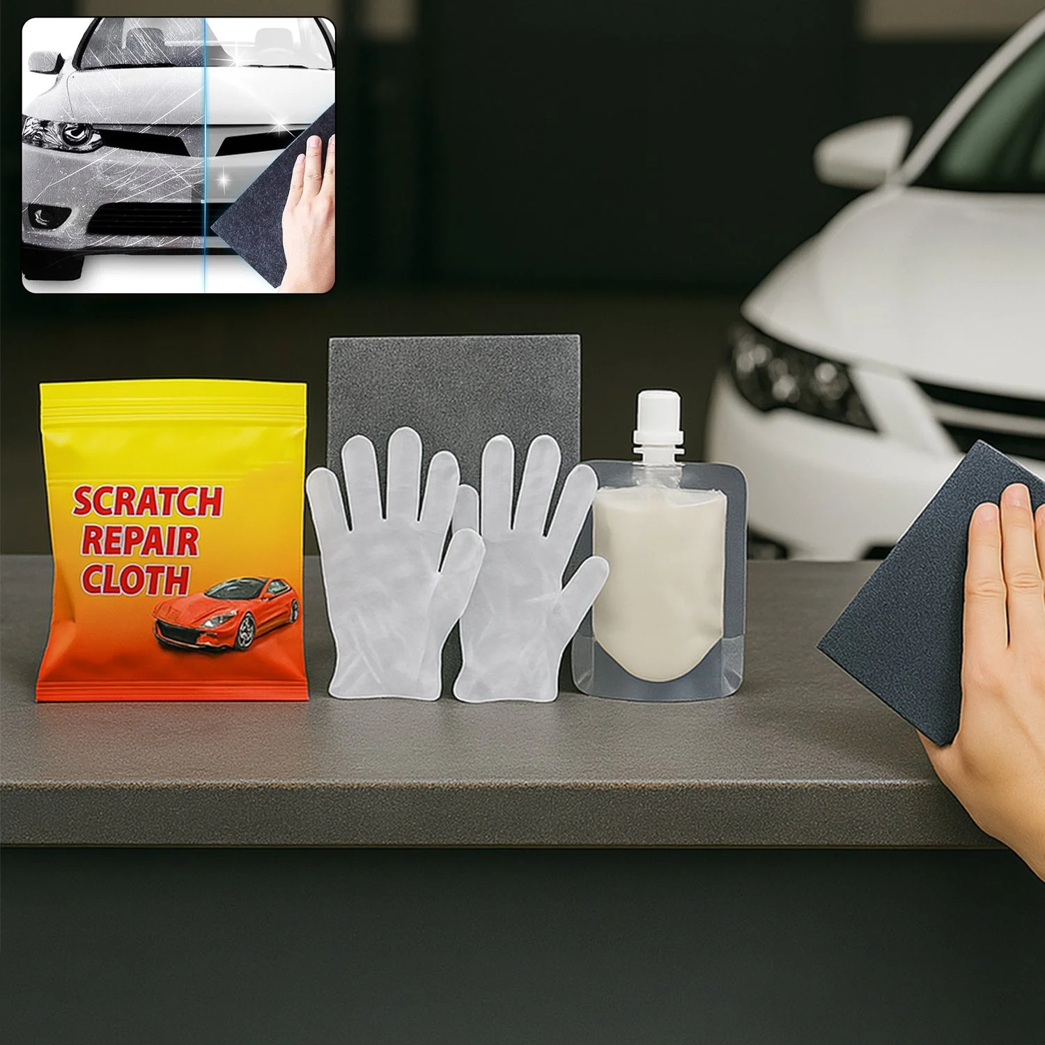 Nano Magic Car Scratch Remover Cloth, Multipurpose Scratch Repair Cloth, Cloth for Car Paint Scratch Repair, Easy to Repair Slight Scratches on the Surface Polishing Repeatable Use for All Kinds of Car (45 ML Repair Solution, 2 Gloves, 2 nano Cloth)