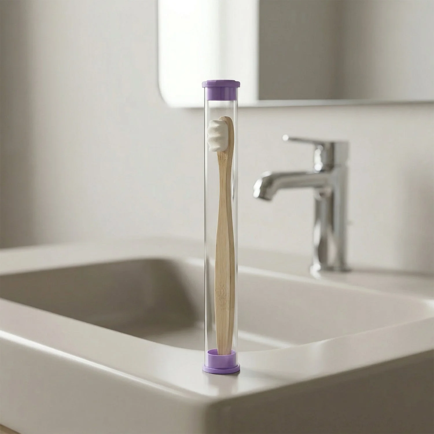 The included travel toothbrush case keeps the brush clean and protected during travel. Designed for durability, this eco friendly toothbrush ensures effective cleaning. A practical bamboo style toothbrush for sustainable oral care routines.