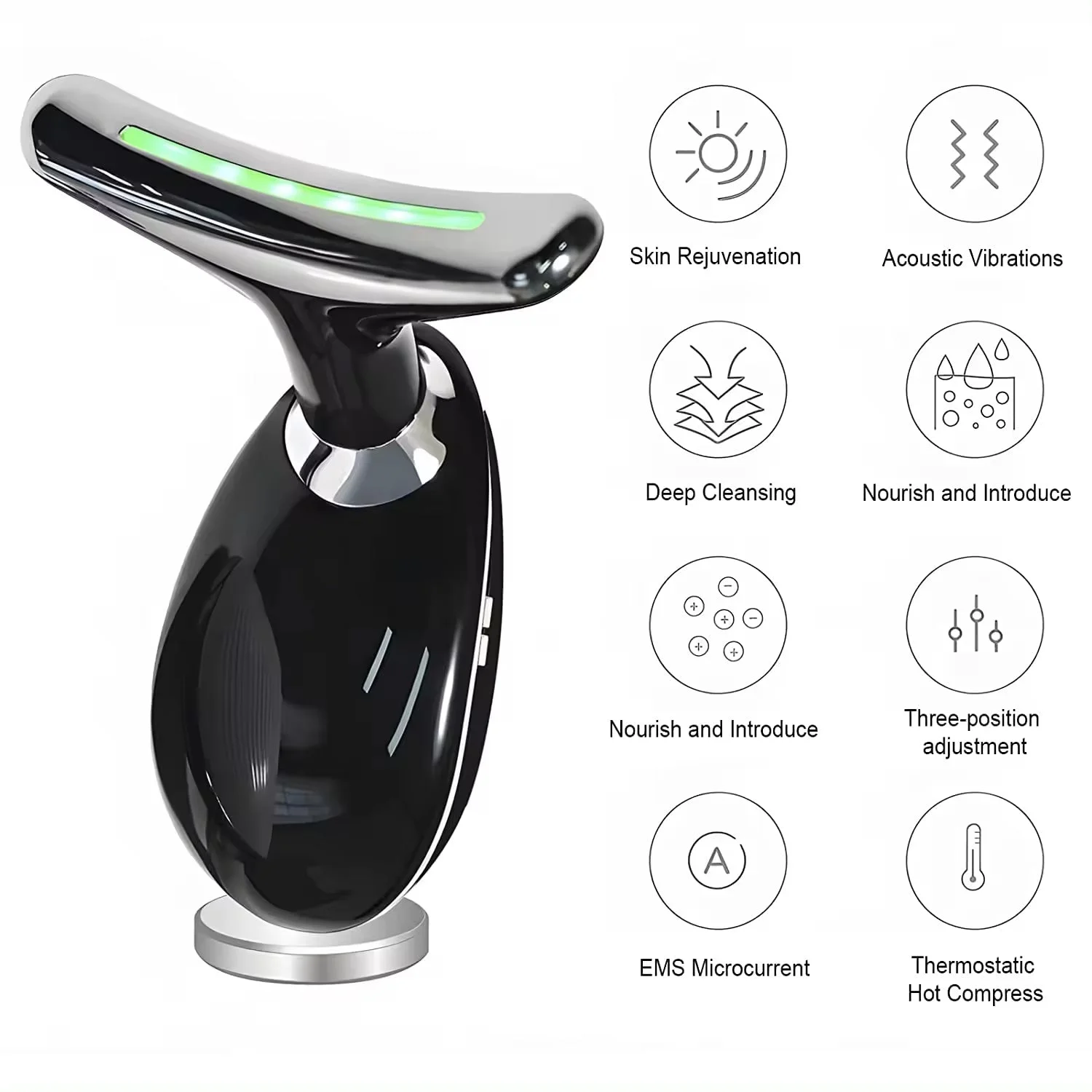 • 【YOU WILL GET A HEATED FACE MASSAGER】According to the survey, compared with normal temperature, a higher temperature can assist the skin to absorb skin care products better. Meanwhile, the warmth will let people feel comfortable and relaxed. The facial massager is designed for our face and neck and heated to approx. 45℃, which makes you feel refreshed while strengthening the skin care effect.