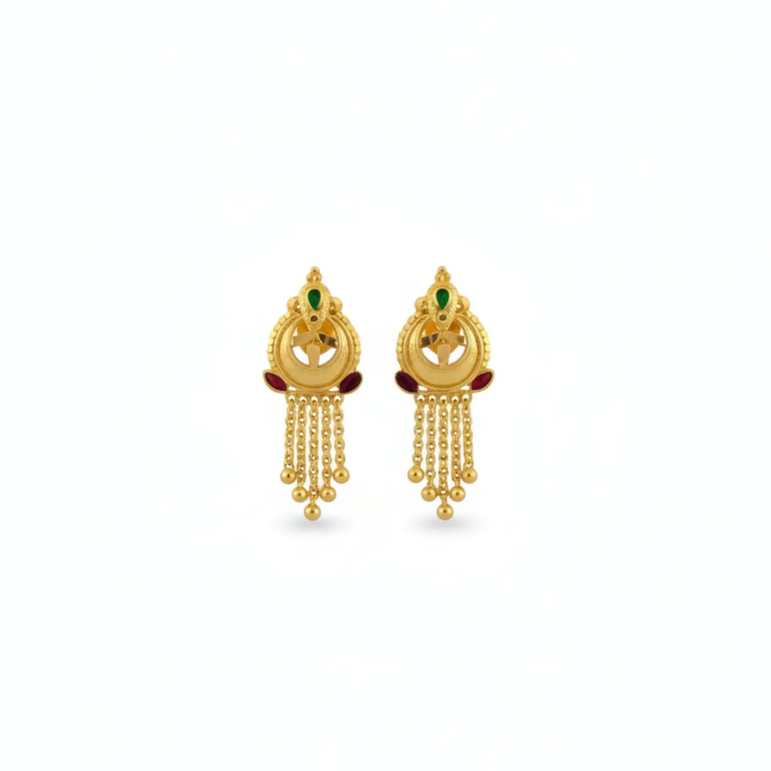 Elevate your ethnic wardrobe with these exquisitely crafted Gold-Plated Jhumka Earrings, featuring intricate filigree work and a classic bell-shaped drop. The ornate circular studs are accented with vibrant green and blue enamel touches, adding a regal pop of color to the traditional design. Finished with delicate golden beads that offer a graceful sway, these lightweight yet stunning earrings are the perfect statement piece for weddings, festivals, and special celebrations.