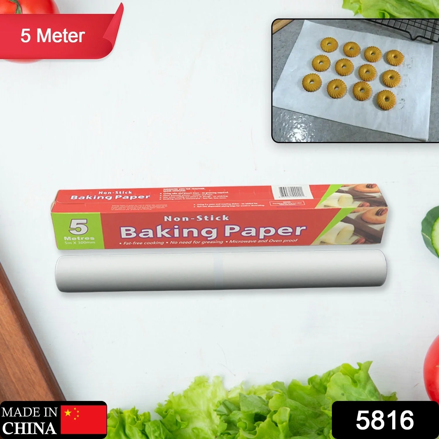 Non Stick Microwave & Oven Proof Parchment Paper/ Baking Paper/ Food Wrapping Paper, Easy to Tear, Easy to Clean, for Grilling, Cooking, deep Fryer, White (5 MTR)