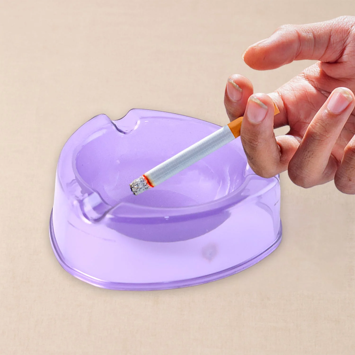 Made for single-piece use and available in purple colors this ashtray offers both function and elegance for indoor or outdoor use. Its transparent finish enhances the aesthetics of any space—be it a balcony, office desk, bar counter, or lounge.