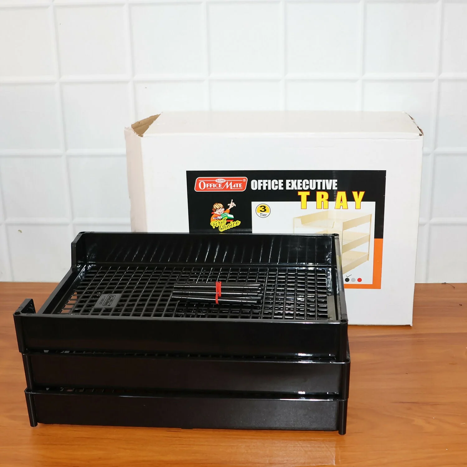 Keep your desk neat and organized with the Officemate 3-Layer Executive Document Tray. Made from strong, durable plastic, it offers three spacious layers for sorting files, papers, and documents efficiently. The ventilated grid design ensures easy cleaning and prevents dust buildup. Its sleek black finish adds a professional look to any workspace while saving valuable desk space. Perfect for office desks, classrooms, and study tables, this tray helps you maintain a tidy and productive environment.