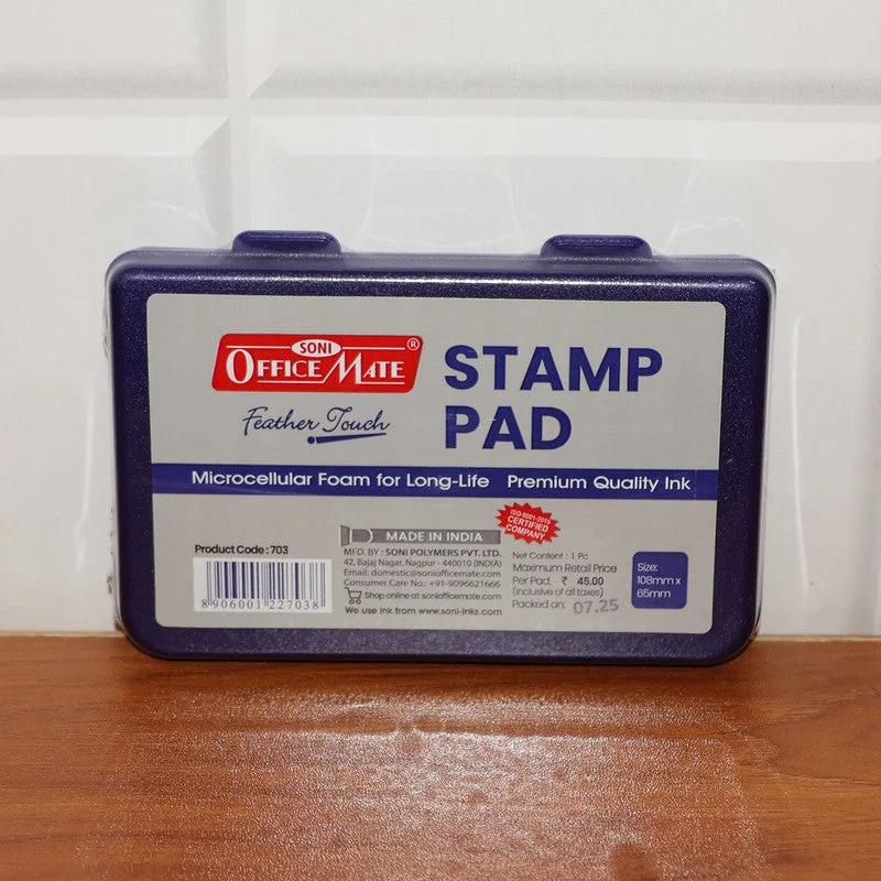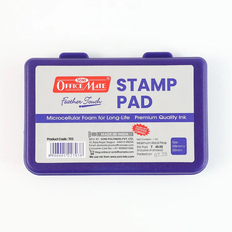 The Officemate Feather Touch Stamp Pad is designed for professionals who need sharp, consistent, and long-lasting impressions every time. Filled with premium-grade blue ink and a microcellular foam surface, it ensures smooth ink transfer to any rubber or polymer stamp. The sturdy plastic casing prevents drying and leakage, keeping the pad usable for an extended period. Its compact and lightweight design makes it ideal for office desks, banks, schools, and official documentation work. Each unit comes ready to use and can be refilled easily with Officemate stamp ink when needed.