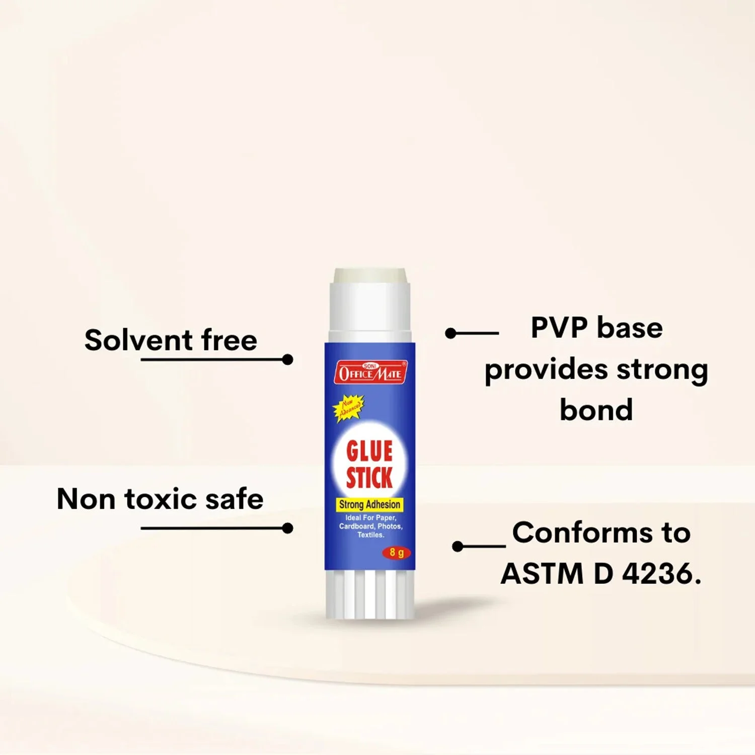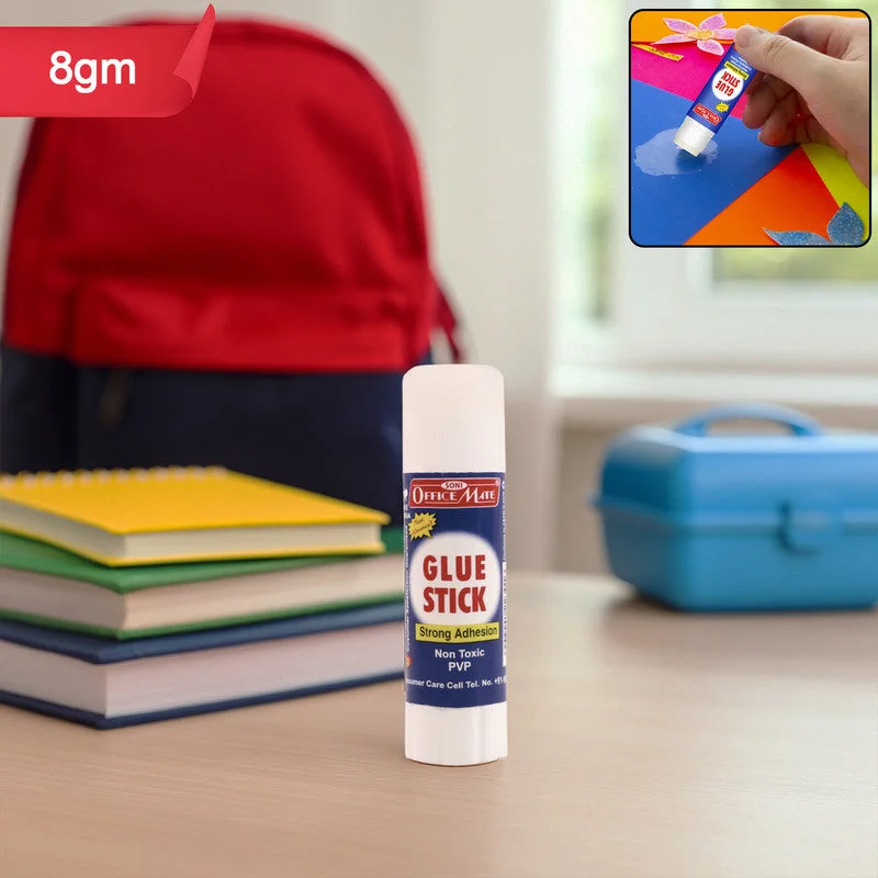 The OfficeMate Glue Stick is a reliable and mess-free adhesive solution perfect for school, office, and craft applications. Formulated with a high-quality PVP base, it provides a strong, clean, and long-lasting bond on paper, cardboard, photos, and other lightweight materials. Its non-toxic, solvent-free composition makes it safe for children and suitable for educational and creative use. The twist-up design ensures precise application with minimal wastage — ideal for projects, scrapbooks, and everyday office work.