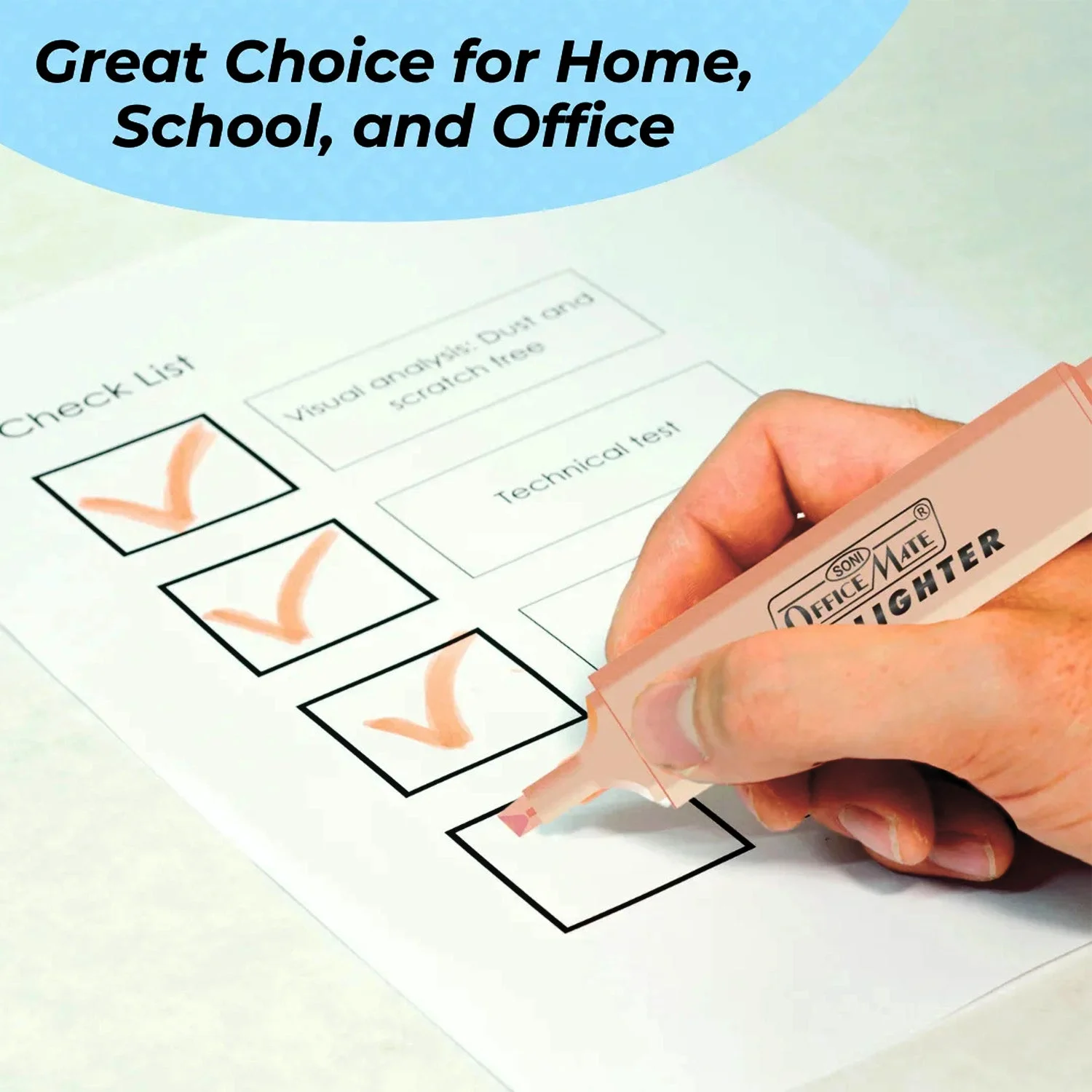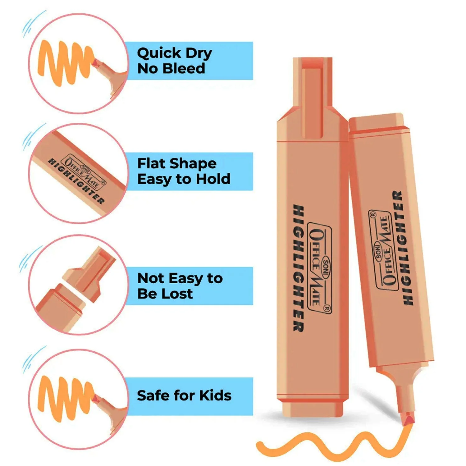 OfficeMate Highlighter Pen Set features five bright, smooth-writing colours that make studying, note-taking, and office work more organized and engaging. Each pen comes with a chisel tip for precise underlining or bold highlighting, while the quick-dry, non-bleeding ink keeps pages neat and smudge-free. Comfortable to hold and long-lasting, these highlighters are perfect for students, professionals, and creative users who value clarity, colour, and consistency in every stroke.