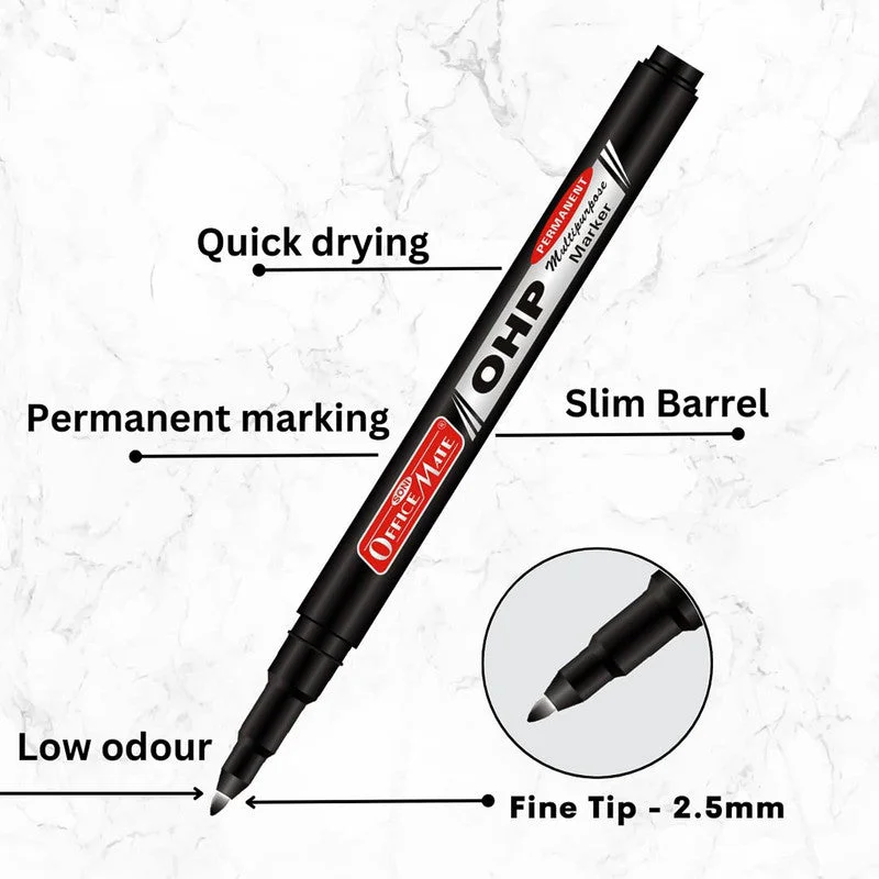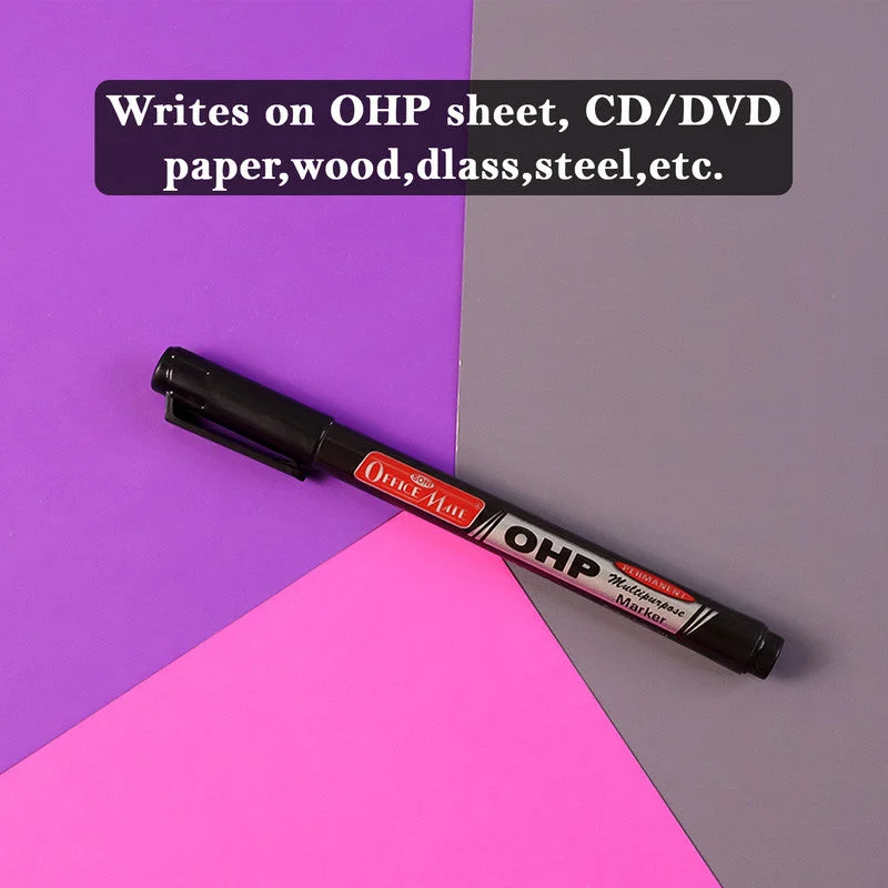 The Officemate OHP/CD DVD Black Marker Pen is a reliable and professional choice for all permanent writing needs. It features a fine polyester fiber tip for smooth, clean, and precise markings. The quick-drying ink is fade-proof, water-resistant, and low in odor, making it perfect for everyday use on various surfaces. Designed with a slim and comfortable barrel, it provides excellent control and grip for long writing sessions. Ideal for OHP sheets, CDs, DVDs, glass, metal, plastic, wood, and other materials.