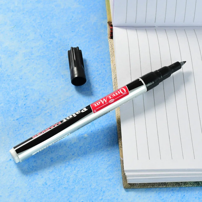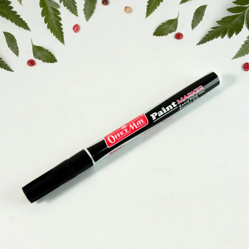The Officemate Paint Marker in black is a professional-grade permanent marker designed for high-precision writing and marking on multiple surfaces. It features an extra fine plastic nib that delivers a steady, clean ink flow ideal for detailed work. The ink is water-resistant, quick-drying, and non-toxic, ensuring long-lasting visibility and smudge-free results. Its slim barrel provides a comfortable grip, while the low-odour formulation makes it suitable for extended use. Perfect for office, industrial, and creative applications, this marker is individually packed for neat storage and presentation.