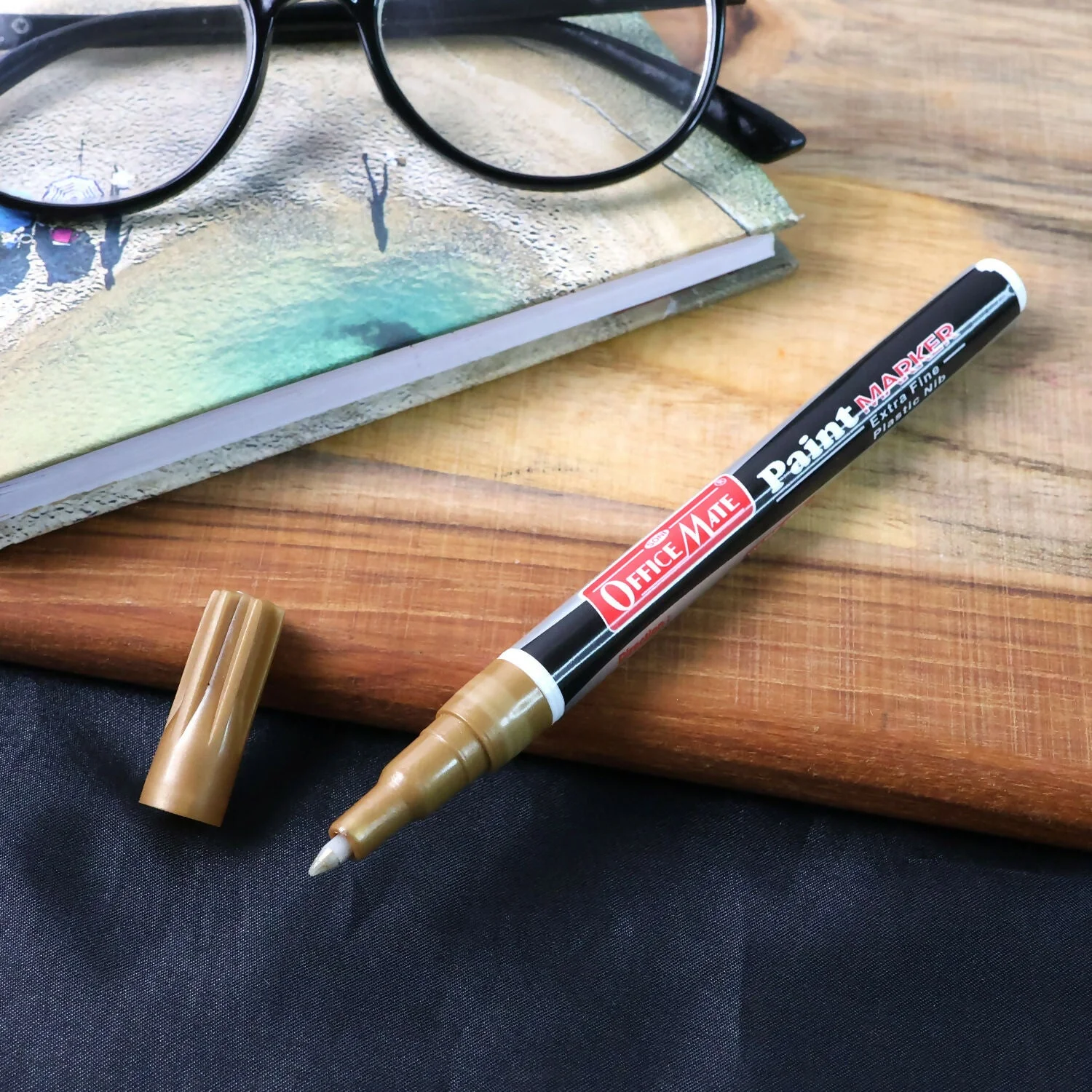 The Officemate Paint Marker with extra fine plastic nib is specially designed for smooth and precise writing. Unlike permanent markers, this marker is safe for paper-based usage, ensuring clear and sharp markings without bleeding. Ideal for crafts, school projects, creative writing, and decorative purposes, it gives a neat metallic gold finish that enhances creativity. Perfect for students, professionals, and artists looking for fine detailing in their work.