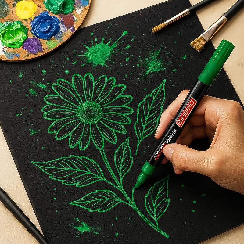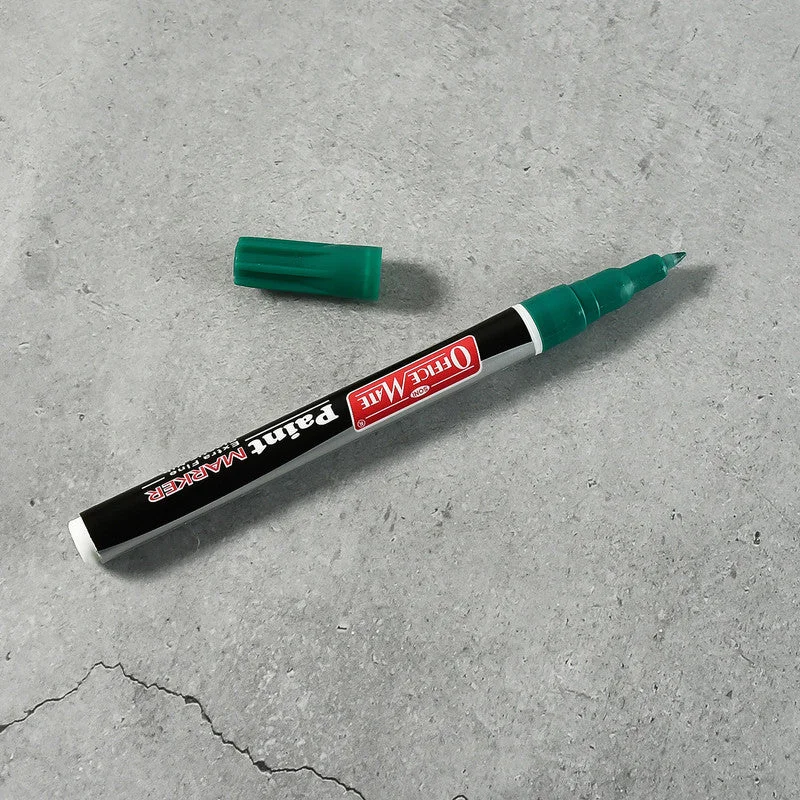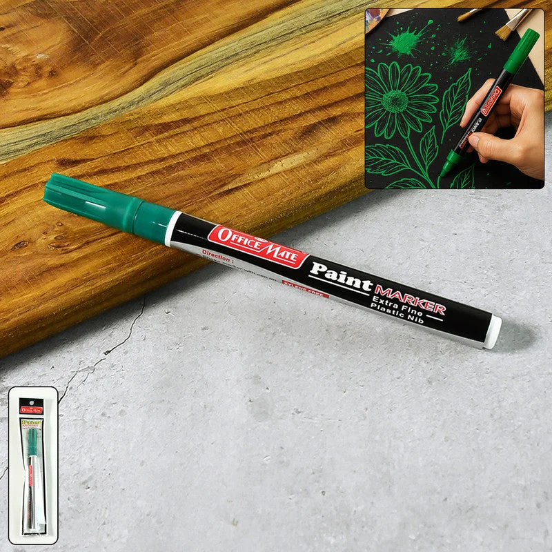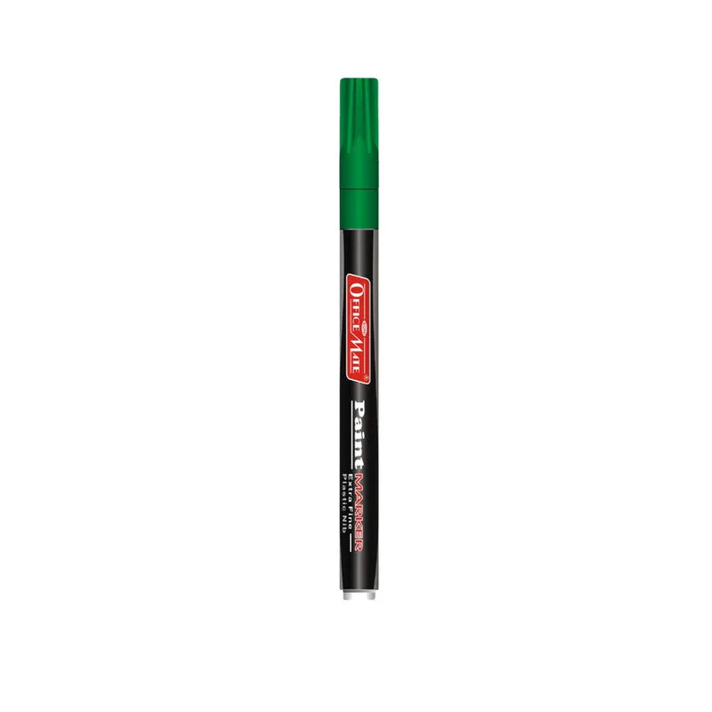 The Officemate Paint Marker in vibrant green offers precise, permanent, and smooth writing for professional and creative applications. Equipped with an extra fine plastic nib, it delivers controlled ink flow ideal for detailing, outlining, and highlighting on various surfaces. The ink is water-resistant, non-toxic, and quick-drying, making it perfect for both indoor and outdoor use. The slim and comfortable barrel design allows effortless grip during long marking sessions, while the roll-stop cap ensures it stays in place without rolling off desks. Each marker is individually packed for freshness and convenience.