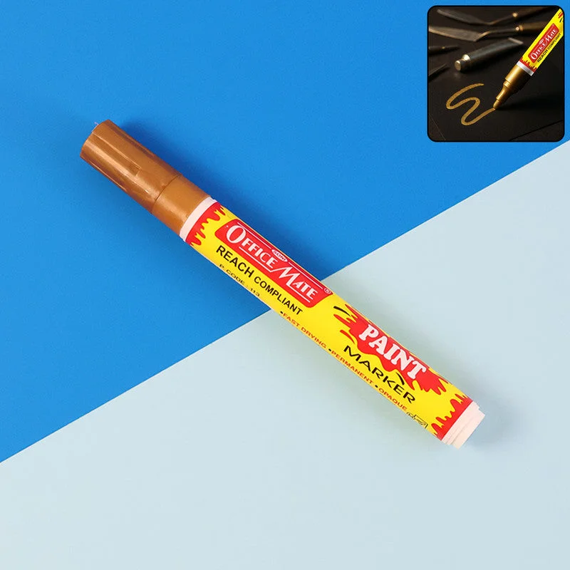 The Officemate Golden Paint Marker Pen is perfect for creating vibrant metallic designs and durable markings on any surface. Its high-gloss gold ink offers a smooth, opaque finish that stands out beautifully on both light and dark materials. The pen’s bullet tip ensures controlled flow and precision while writing, outlining, or decorating. Ideal for professionals and artists alike, it delivers long-lasting, water-resistant, and low-odor performance with a quick-drying formula that prevents smudging.