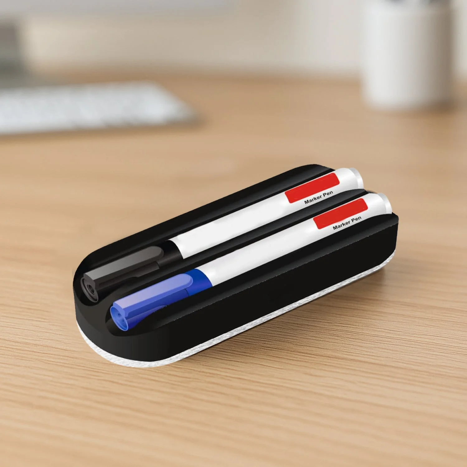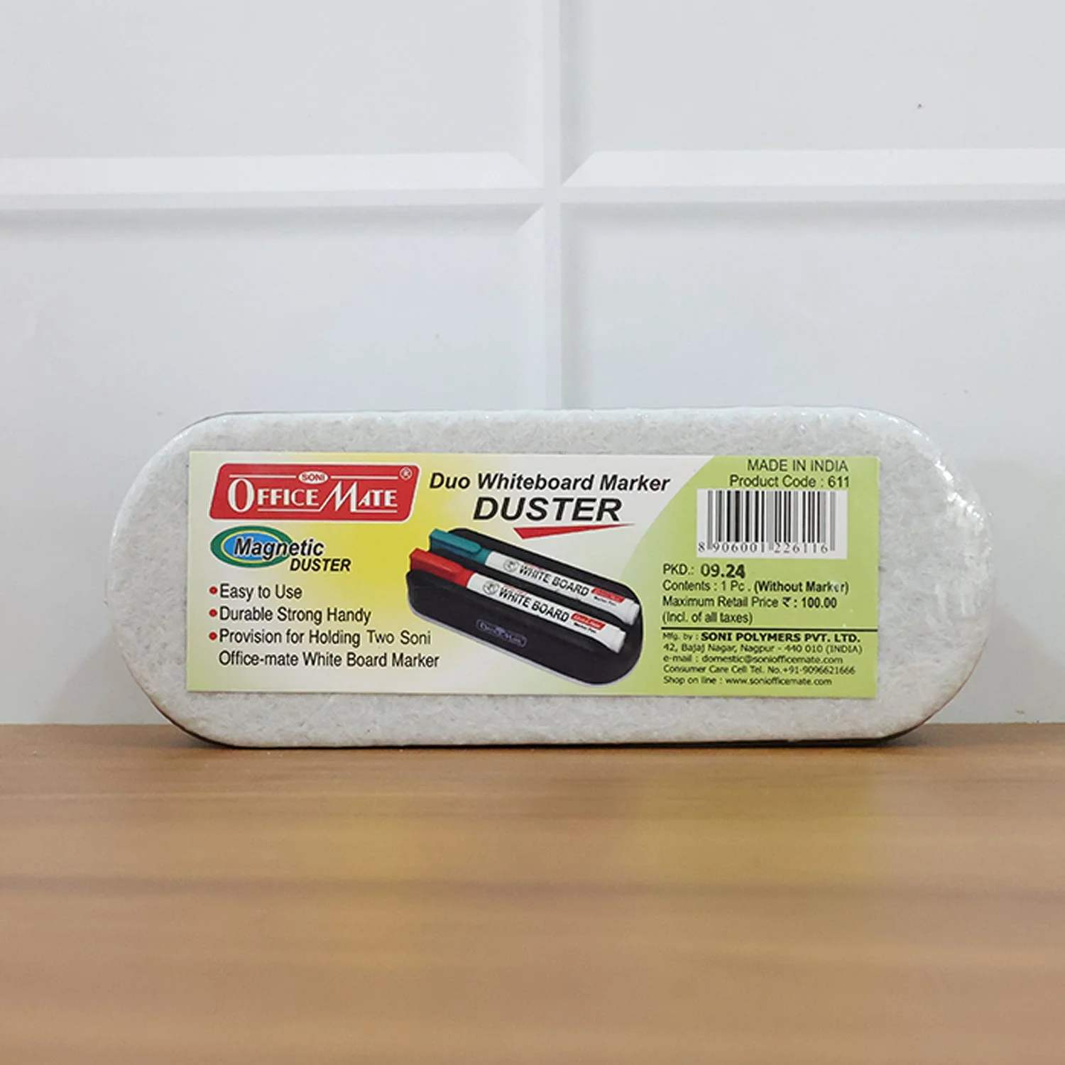 Officemate Whiteboard Duster is a durable and efficient cleaning tool designed for smooth whiteboard maintenance. Featuring a soft felt surface, it effortlessly removes dry-erase ink without leaving stains or scratches. The lightweight, ergonomic design ensures comfortable handling, while the magnetic backing allows it to attach easily to any magnetic whiteboard surface. Its built-in pen slots conveniently hold markers, keeping your workspace organized and tidy.