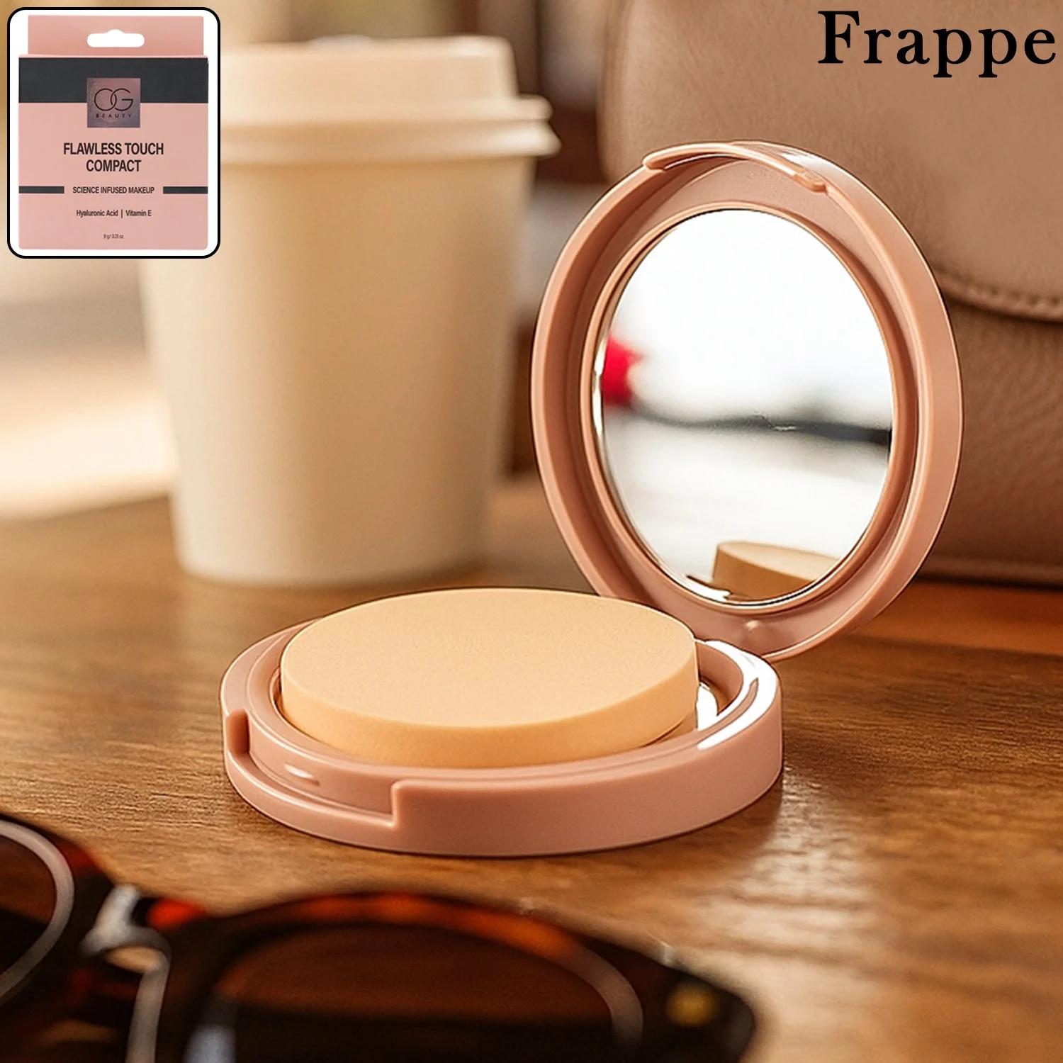 OG Beauty Frappe Flawless Touch Compact Powder – Shade Brew – Enriched with Hyaluronic Acid & Vitamin E – 9 gm – Long Lasting Matte Finish Face Makeup