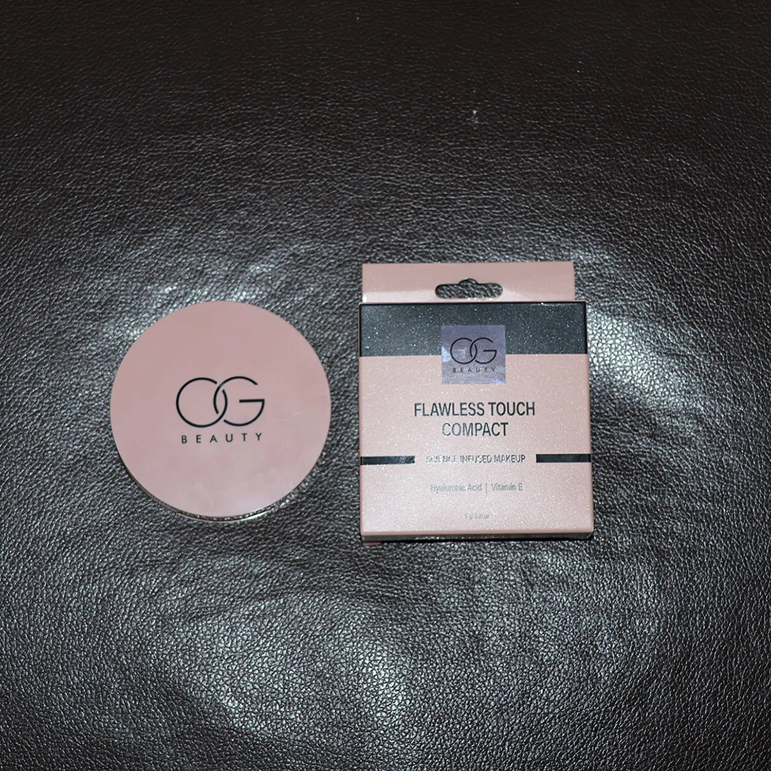 Achieve a flawless, natural look with the OG Beauty Flawless Touch Compact Powder in the elegant Brew shade. This compact is infused with Hyaluronic Acid and Vitamin E, giving your skin a smooth, radiant finish while keeping it nourished. Its lightweight, long-lasting formula blends seamlessly, offering even coverage and shine control throughout the day. Designed with a built-in mirror and soft sponge applicator, it ensures quick and easy touch-ups anywhere, anytime. Perfect for daily wear and special occasions, this compact enhances your makeup routine with a matte yet natural finish.