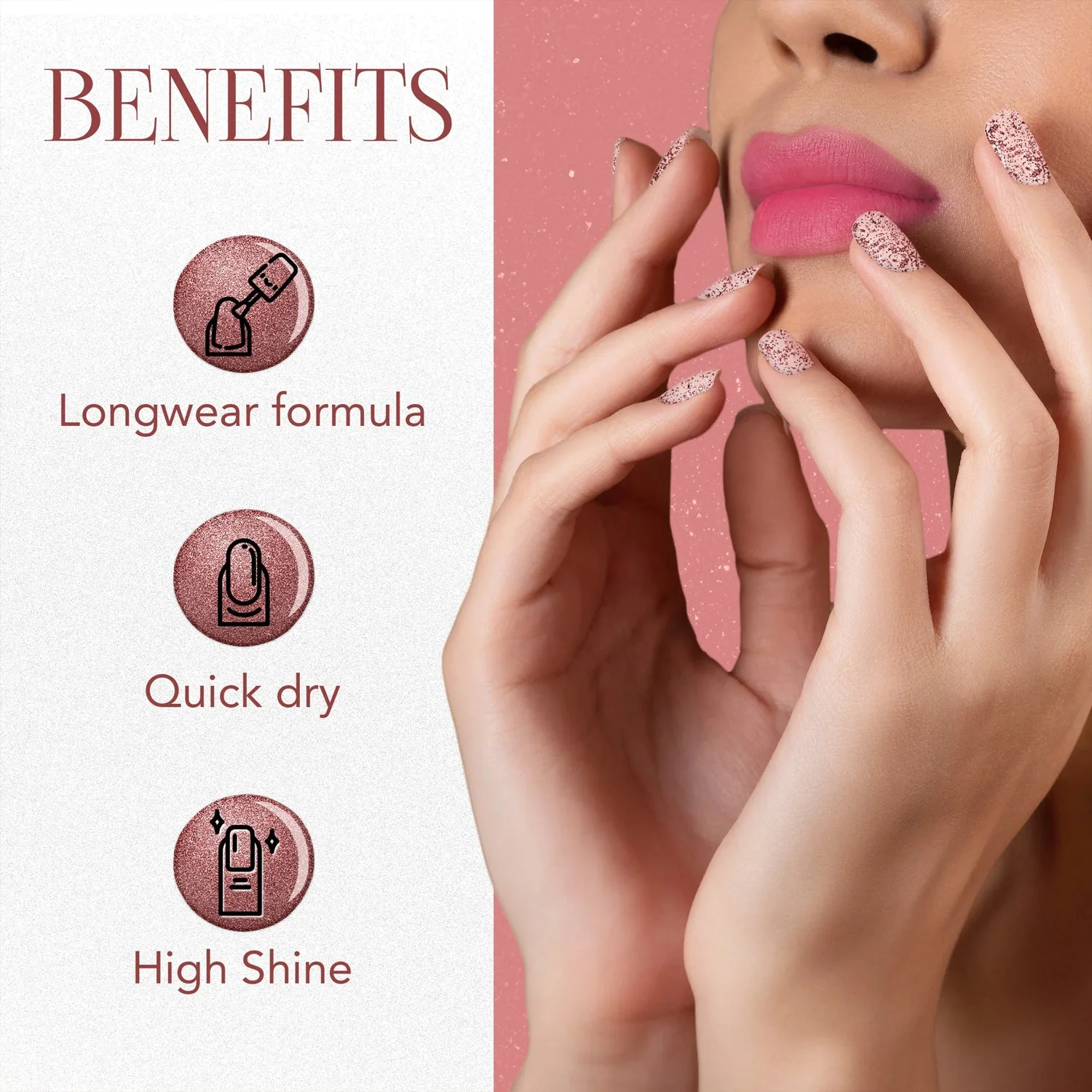 OG Beauty Metallic Rose Starlet Glitter Nail Paint 10 ML – Long Lasting Quick Dry Sparkling Nail Polish with Shiny Glitter Finish for Party & Festive Look