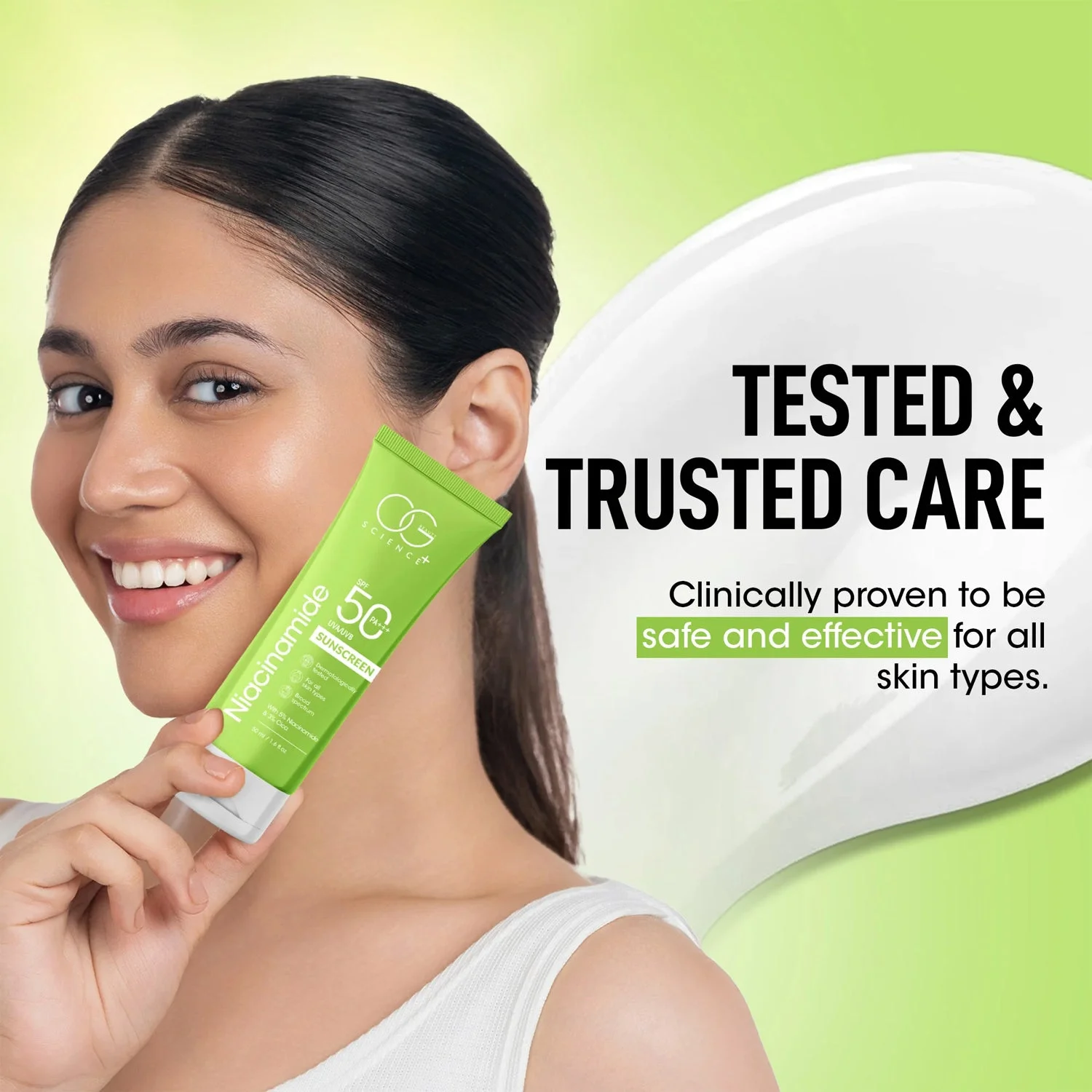OG Beauty 50 ML Niacinamide Sunscreen SPF 50 PA+++ – Broad Spectrum UVA/UVB Protection, Dermatologically Tested Sun Cream for All Skin Types