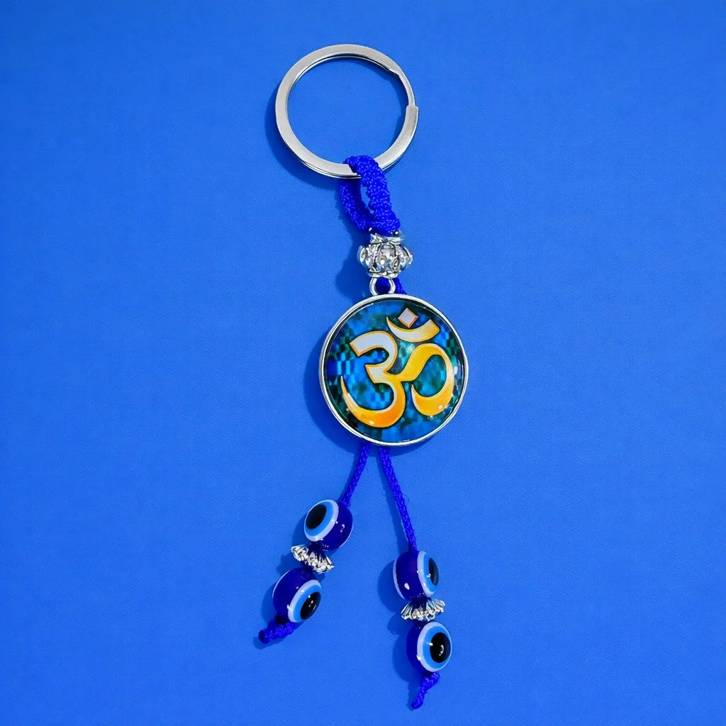 Be the first to review Om Evil Eye Keychain with Blue Beads for Car Keys, Bags & Gifting!