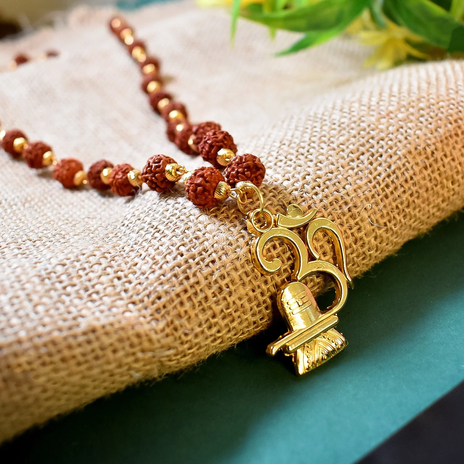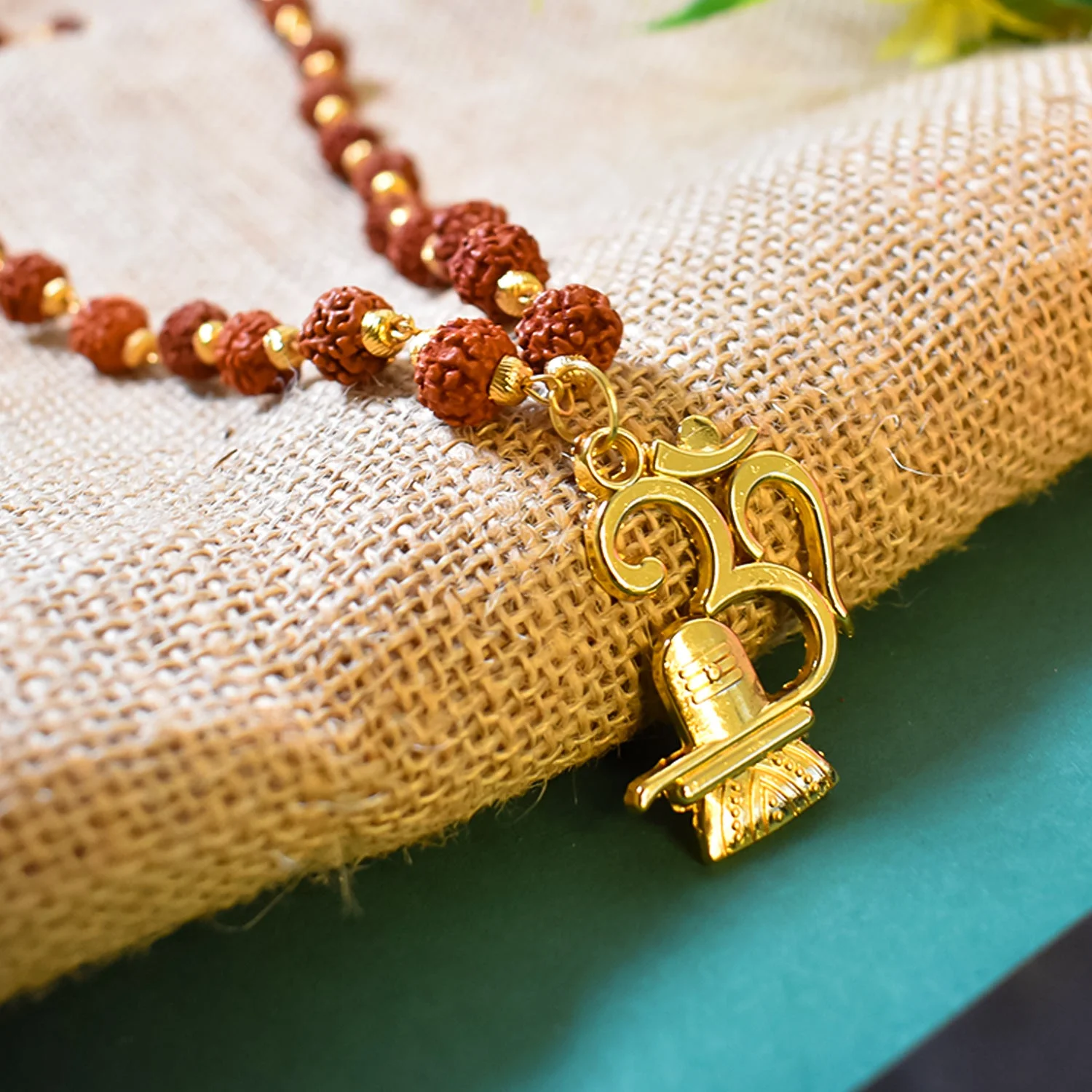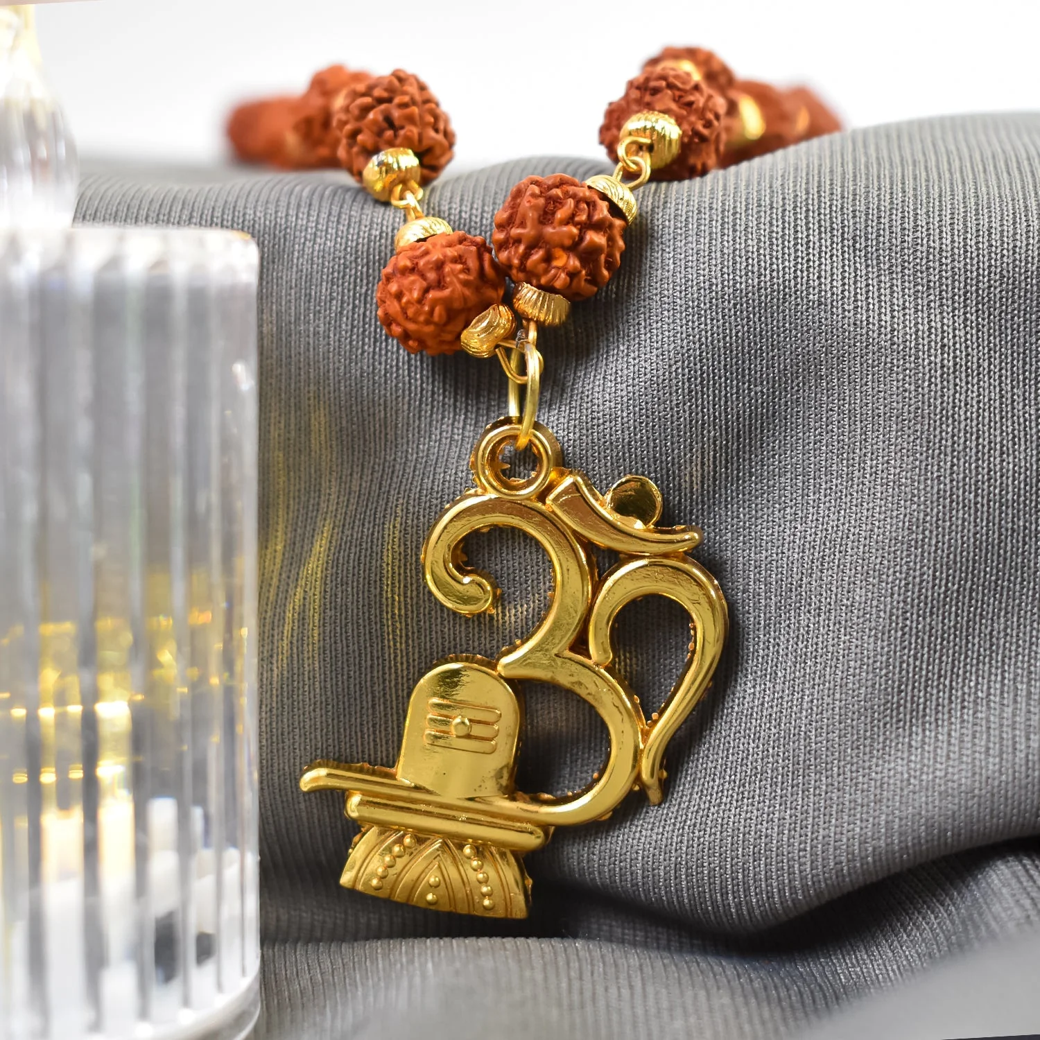 Om Pendant with Rudraksha and Shivling: Divine Protection and Blessings