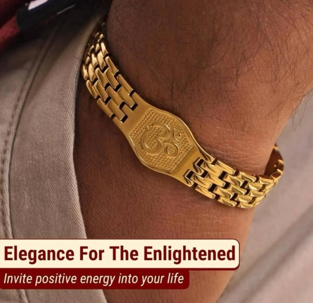 Om Premium Gold Brass Plated Bracelet | Spiritual Jewellery for Men & Women