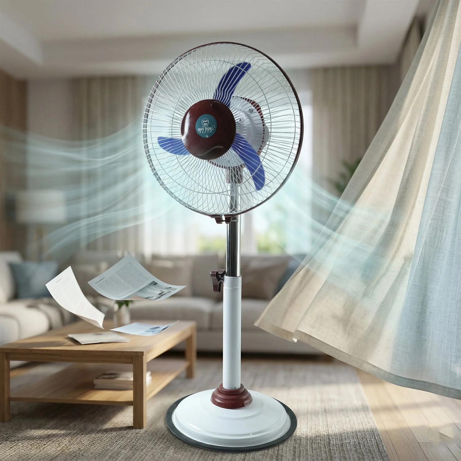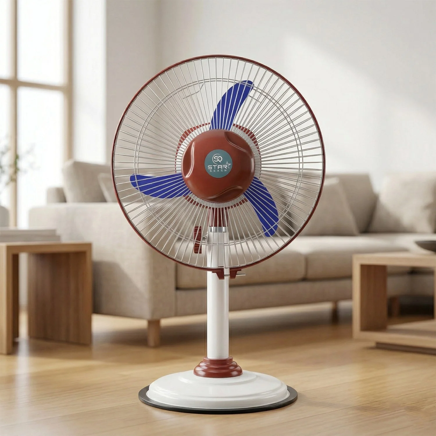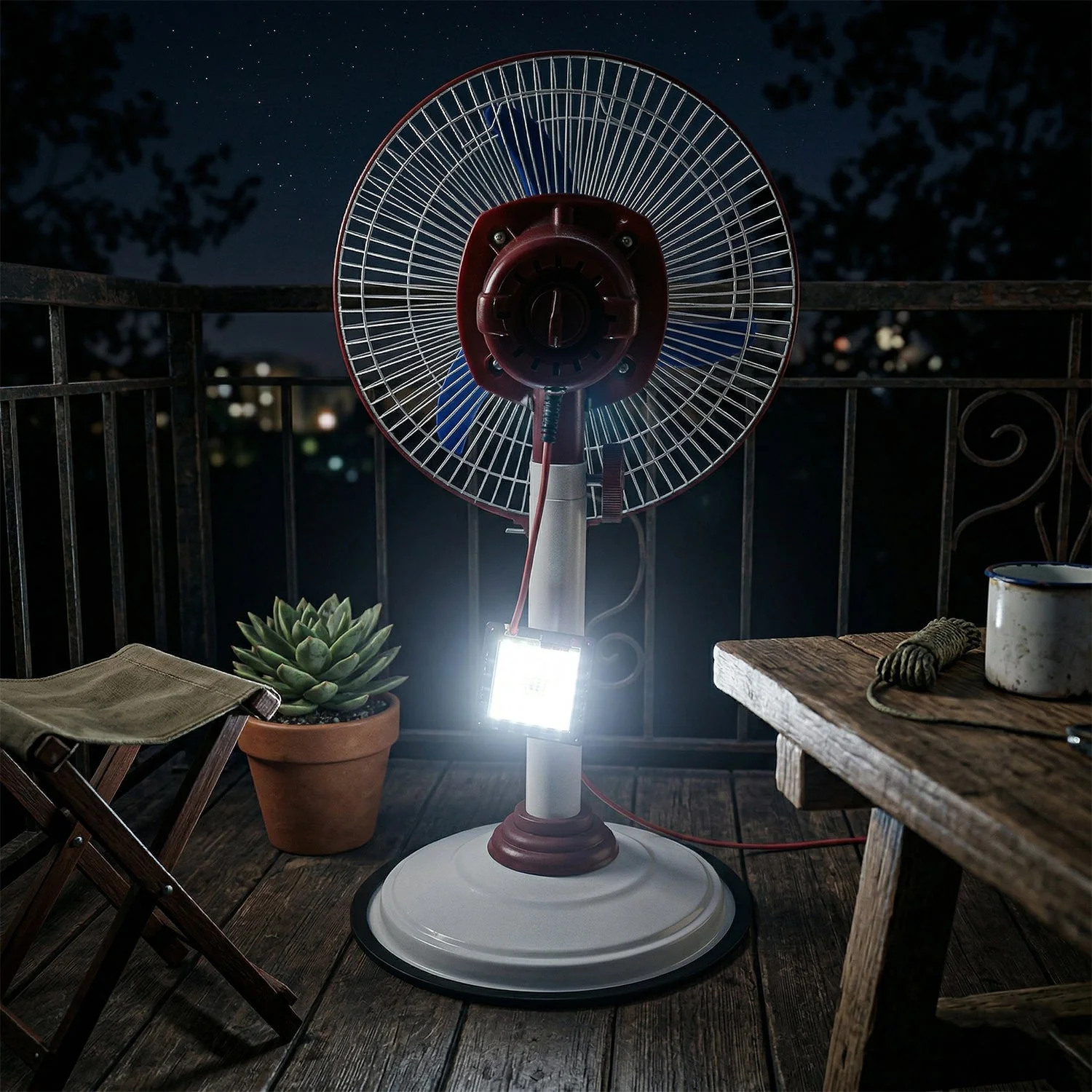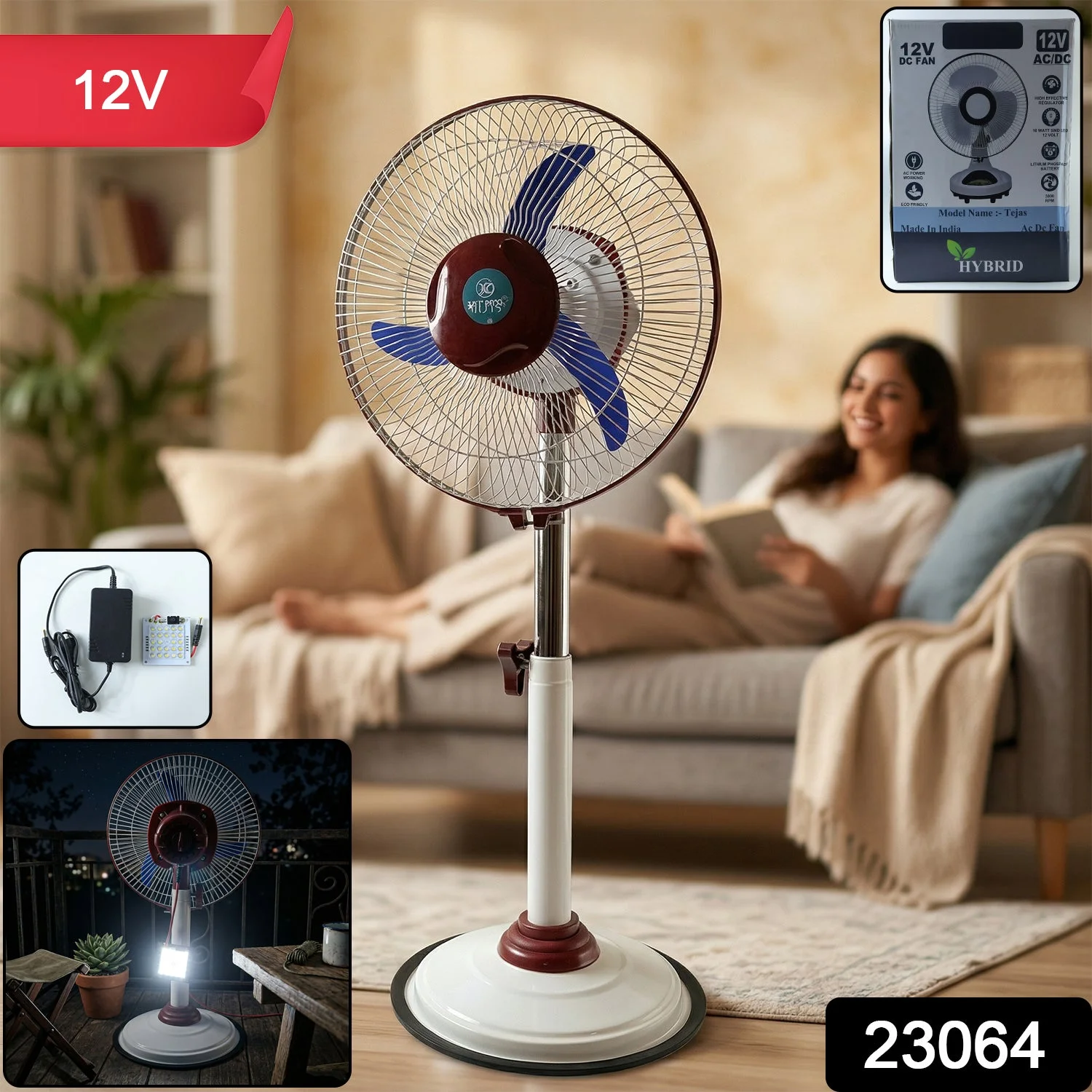 Experience powerful cooling with this rechargeable pedestal fan designed for larger spaces. This 12V standing fan offers strong airflow and adjustable height for maximum comfort.With built-in lighting, this fan with LED light is ideal for emergencies and daily use. A reliable battery operated pedestal fan for uninterrupted cooling.