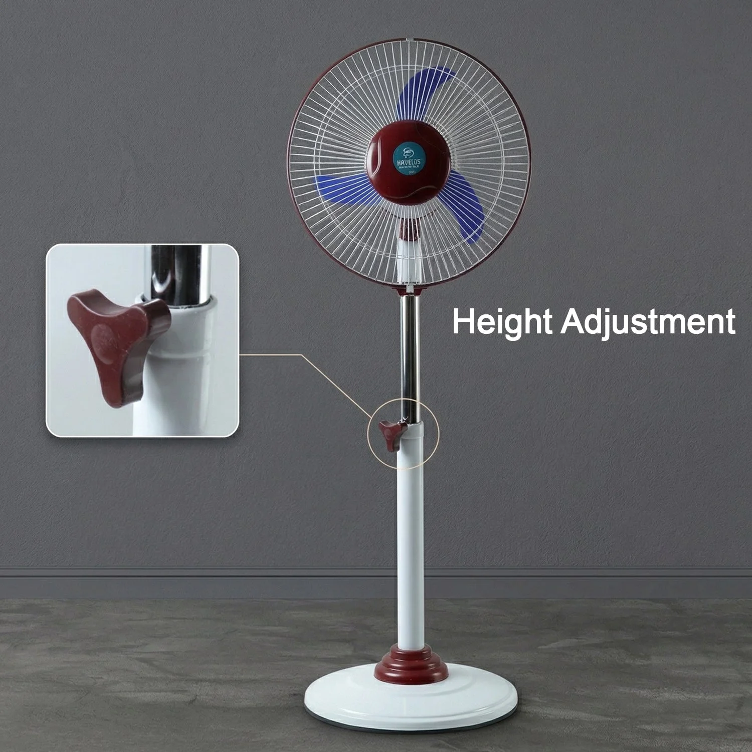 OMEGA 12V Rechargeable Pedestal Fan with LED Light 1 Pc – Adjustable Height Stand Fan with AC/DC Dual Power Portable Cooling Fan for Home Office Outdoor Use and Power Cut Emergency Backup