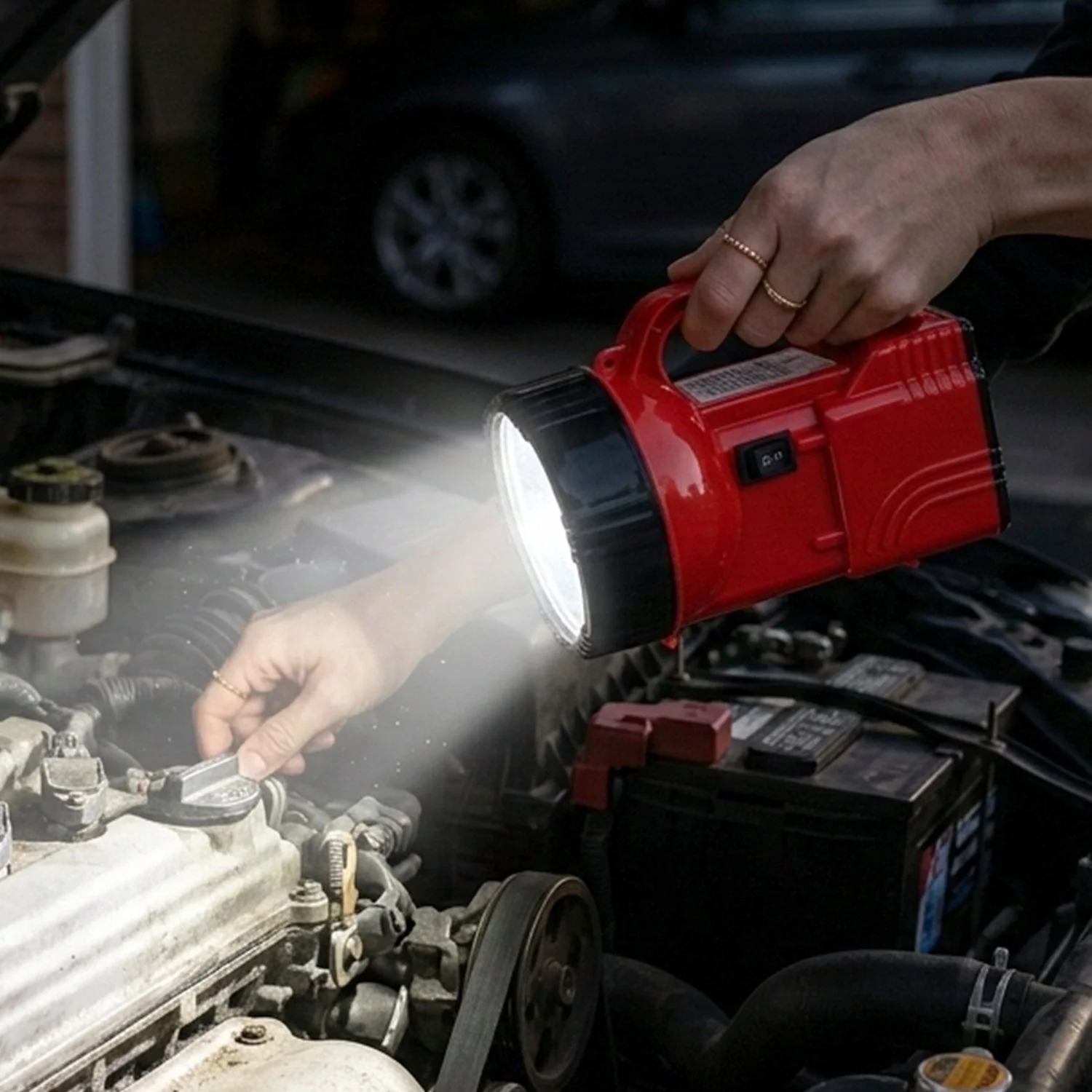 Ensure reliable illumination during emergencies and outdoor activities with this 35W rechargeable LED Laser light designed for powerful performance. Featuring a high-intensity LED beam, this heavy duty torch provides bright and focused lighting ideal for dark environments such as car repair, camping sites and power outages. The ergonomic top handle allows comfortable grip and easy portability, while the sturdy body ensures durability during regular use. Its rechargeable system eliminates the need for constant battery replacement, making it a cost-effective lighting solution. Compact yet powerful, this search light is an essential tool for home, vehicle and outdoor emergency preparedness.