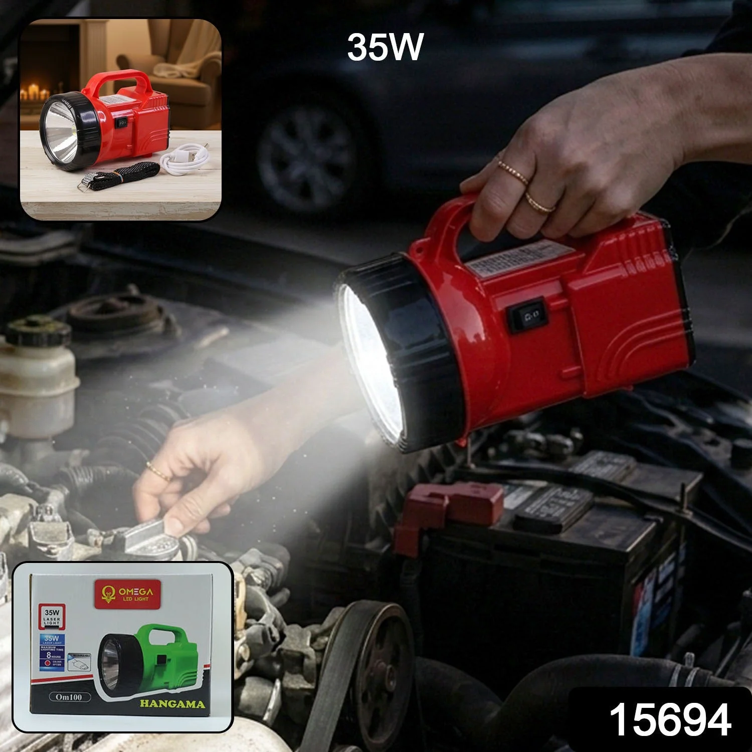 OMEGA 35W High Power Rechargeable LED Emergency Laser Light with Long Range Beam and Heavy Duty Carry Handle – Portable Torch for Car Repair, Camping and Power Backup Use (1 Piece)