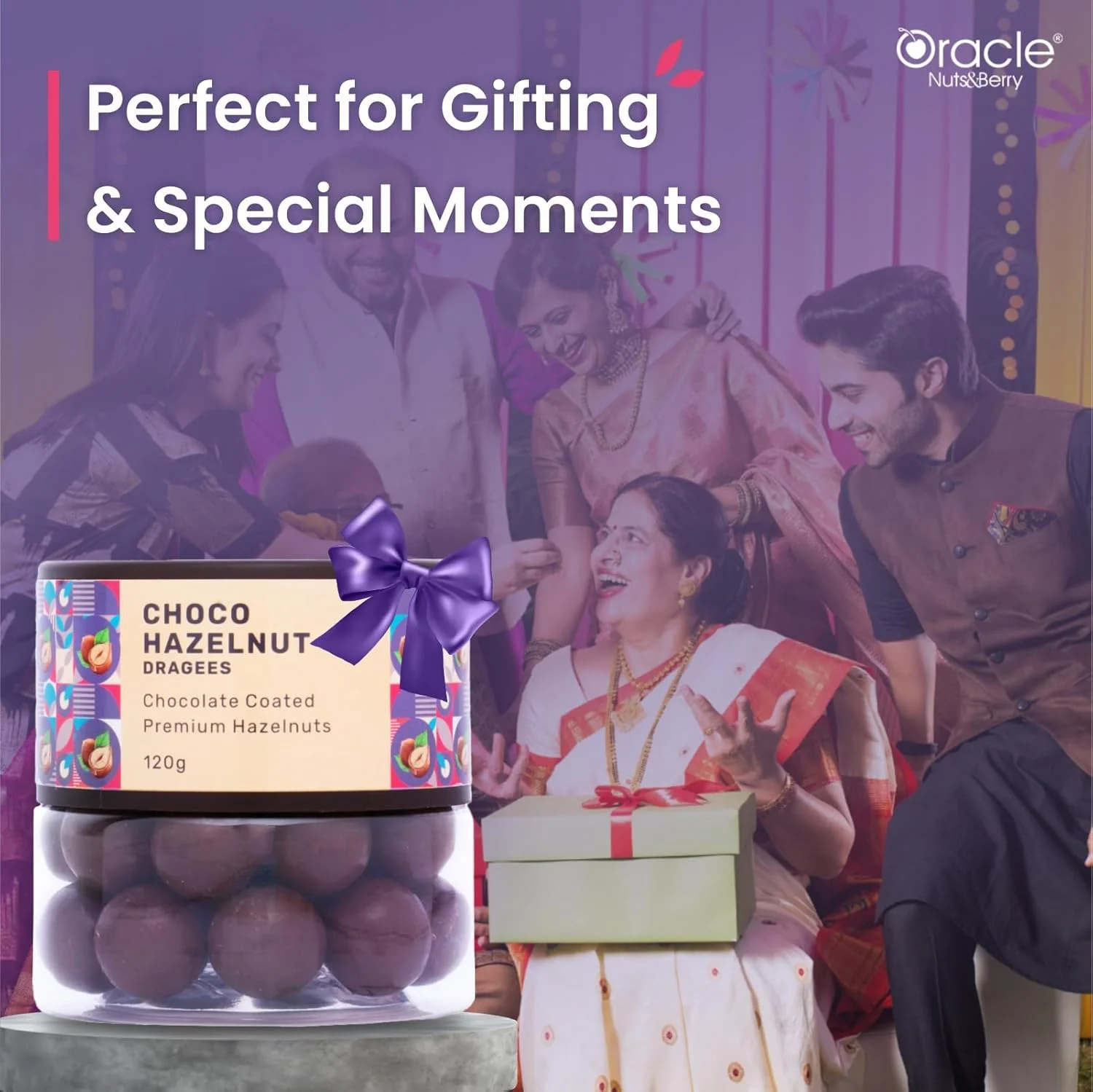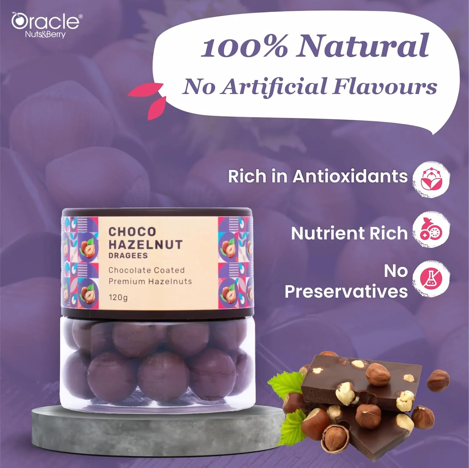 Oracle Nuts & Berry Choco Hazelnut Dragees are a luxurious combination of rich chocolate and crunchy premium hazelnuts, crafted to deliver a gourmet snacking experience. Each piece is carefully coated with smooth chocolate that enhances the nutty flavor of hazelnuts, making it an irresistible treat. Perfect for gifting, sharing, or indulging in a sweet craving, these dragees bring a blend of taste, health, and luxury.