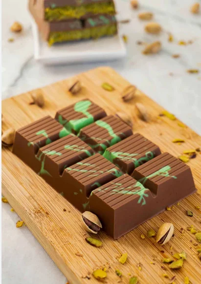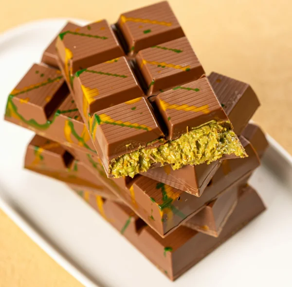 Premium Dubai-inspired chocolate bar with pistachio & kunafa filling