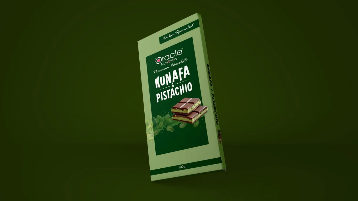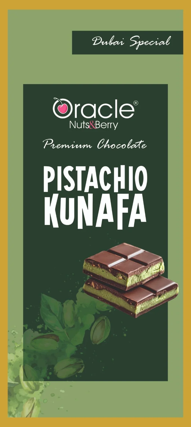 Oracle Nuts & Berry Premium Dubai Pistachios Kunafa Bar Chocolate 100gm Rich Pistachio Kunafa Filling in Smooth Chocolate