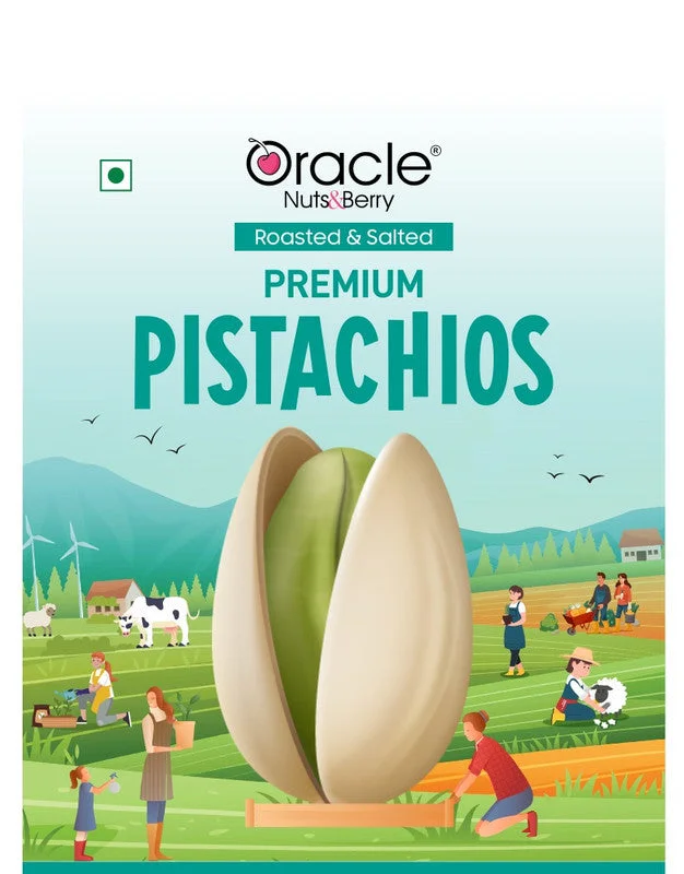 Indulge in the rich taste of Oracle Premium Pistachios, perfectly roasted and lightly salted to enhance their natural flavor. Packed with protein, dietary fiber, and essential nutrients, these pistachios are a wholesome snack that supports heart health and active living. Hygienically packed in freshness-sealed pouches, they make an ideal choice for healthy snacking, gifting, or adding to your favorite recipes.