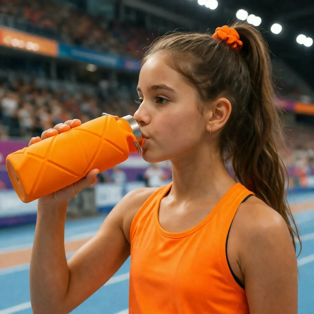 orange water bottle, collapsible water bottle, silicone bottle, foldable bottle, travel water bottle, portable bottle, leakproof bottle, gym bottle, outdoor bottle, reusable bottle