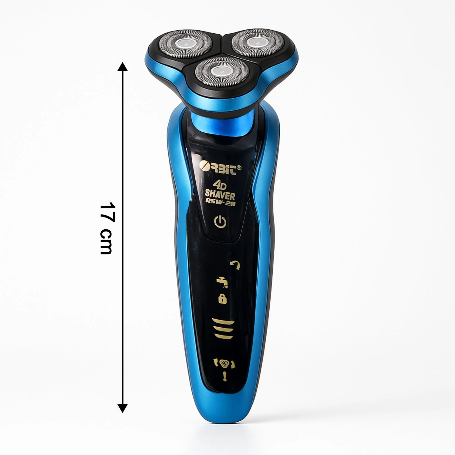 Orbit 4D Rechargeable Electric Shaver with Triple Floating Blades – Waterproof Cordless Beard and Mustache Trimmer for Smooth Shaving and Grooming – 1 Pc