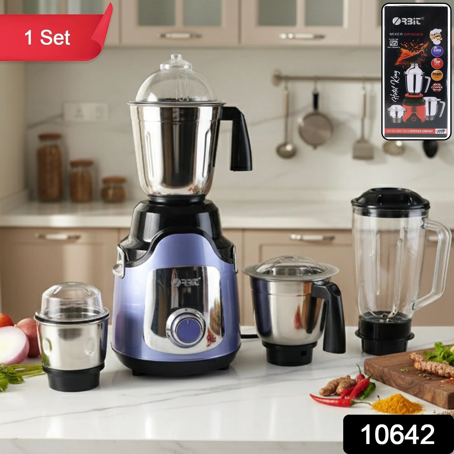 Orbit Heavy Duty 1 hp (746) Watts Mixer Grinder with 4 Multipurpose Jars – Stainless Steel & Unbreakable Polycarbonate Jars – Powerful Motor for Grinding, Blending & Juicing