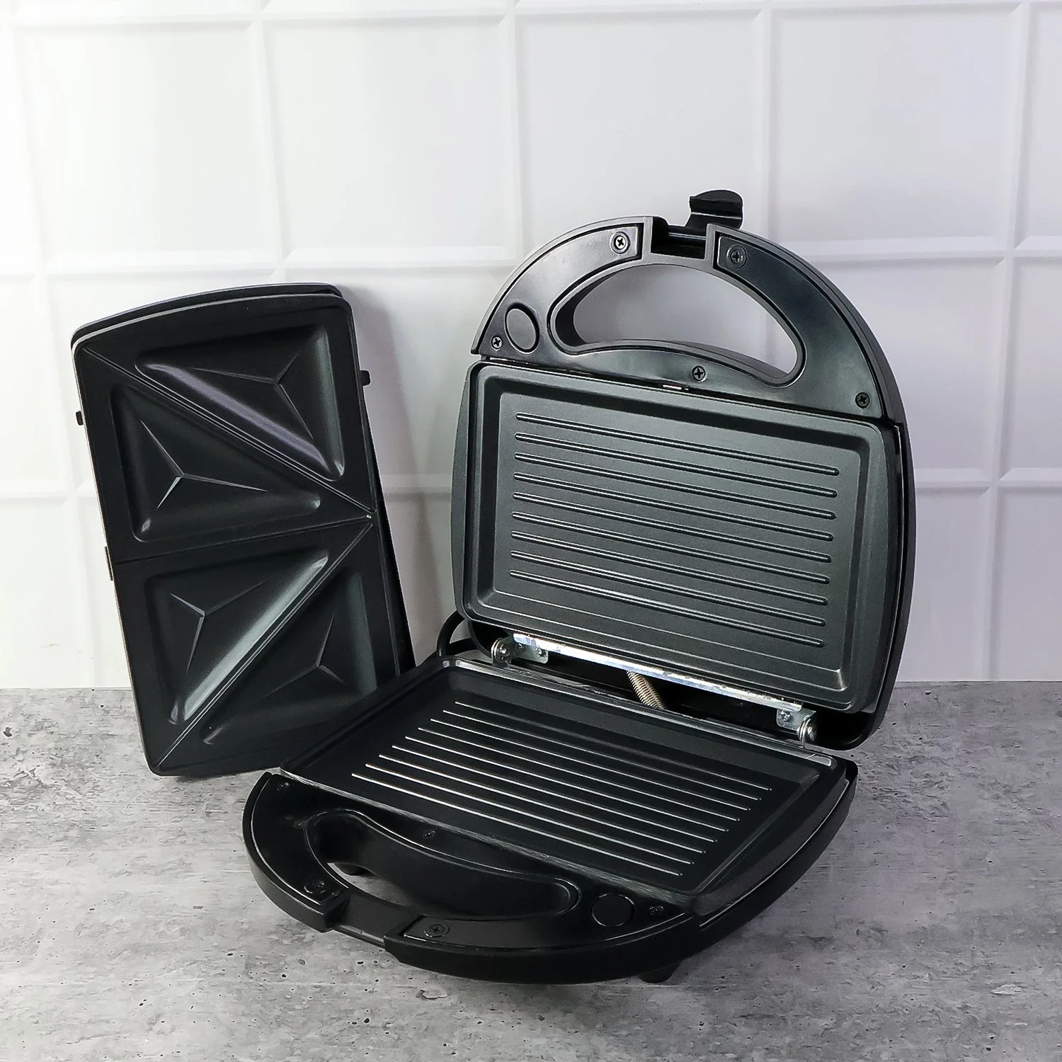 Interchangeable Plates: Includes plates for grilled sandwiches and toasted sandwiches