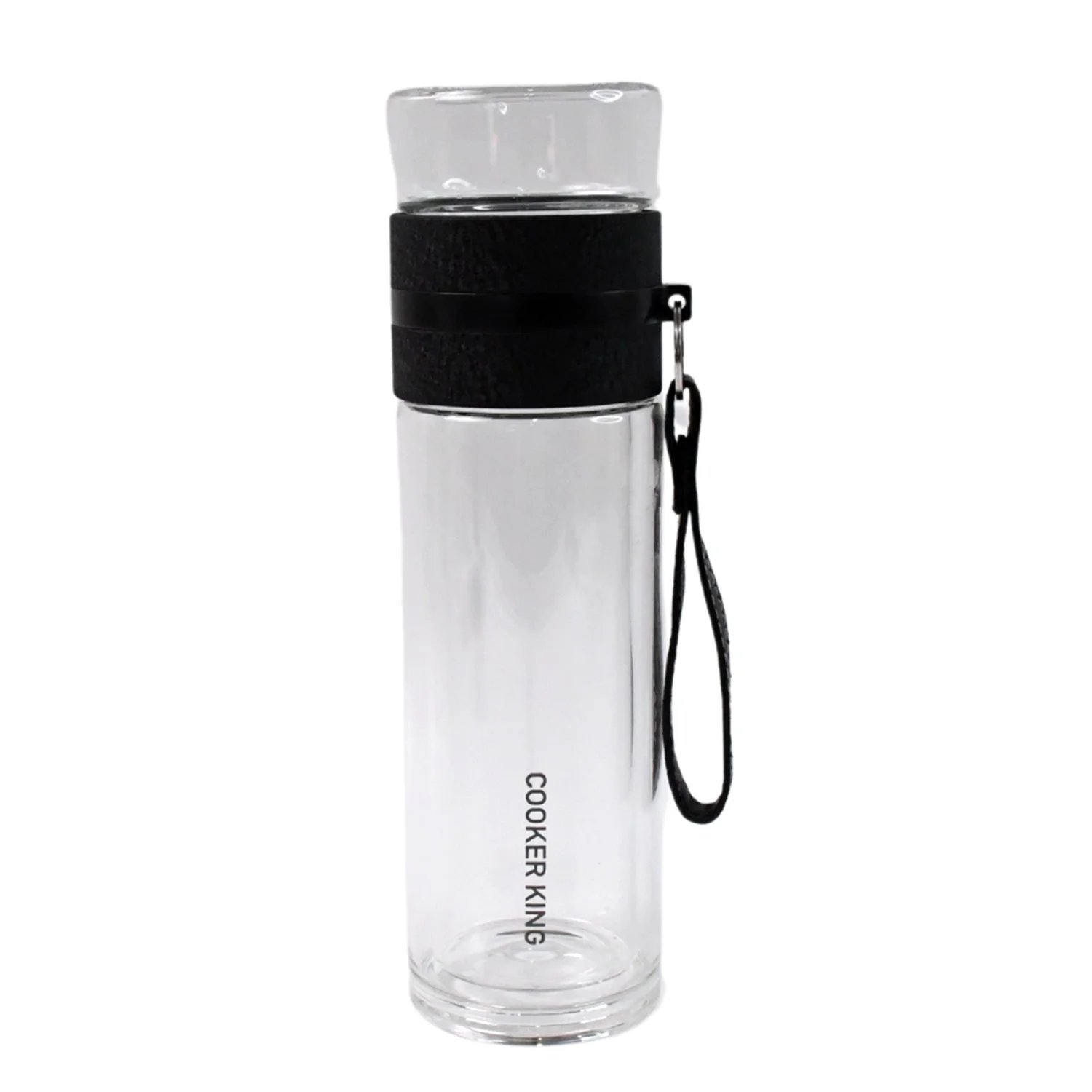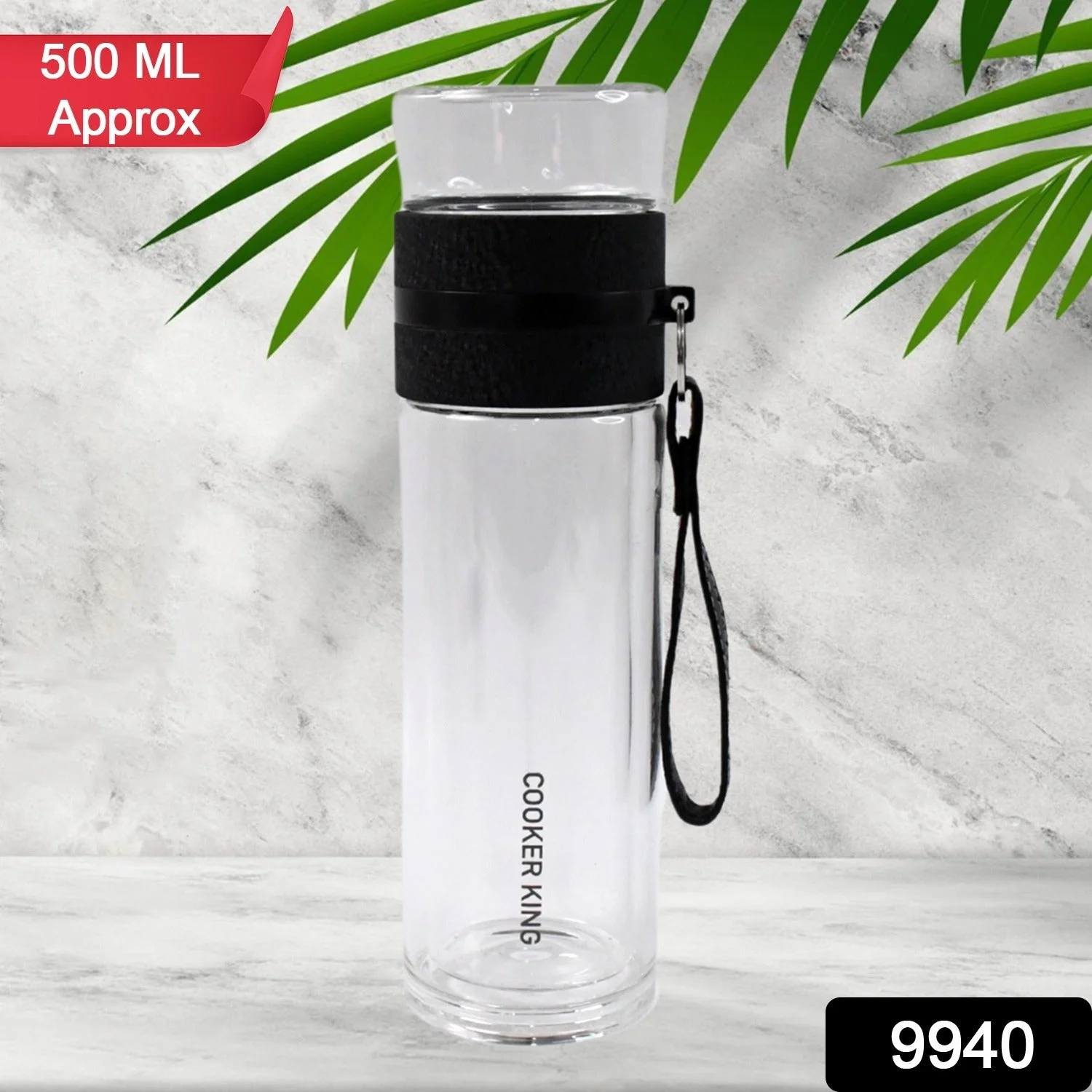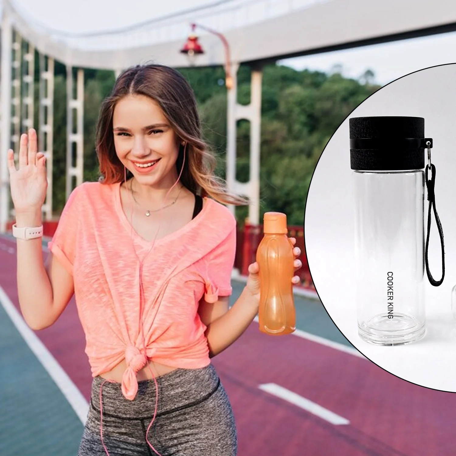Outdoor Sport Glass Water Bottle Leakproof Bpa-Free For Travel Cold And Hot Water Glass Water Bottle With Daily Water Intake For Gym And Children With Steel Lid / 500 Ml Approx)