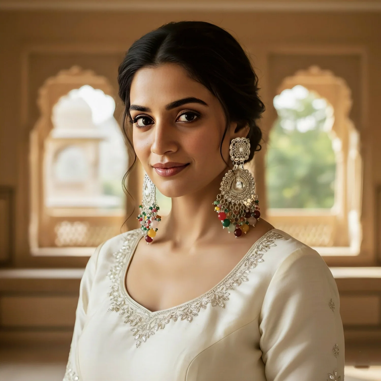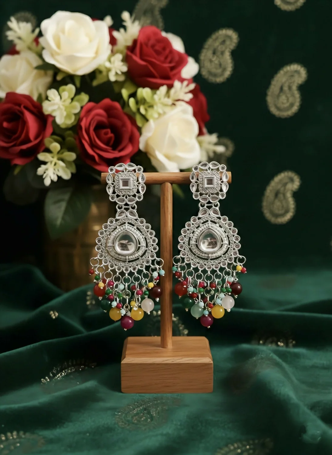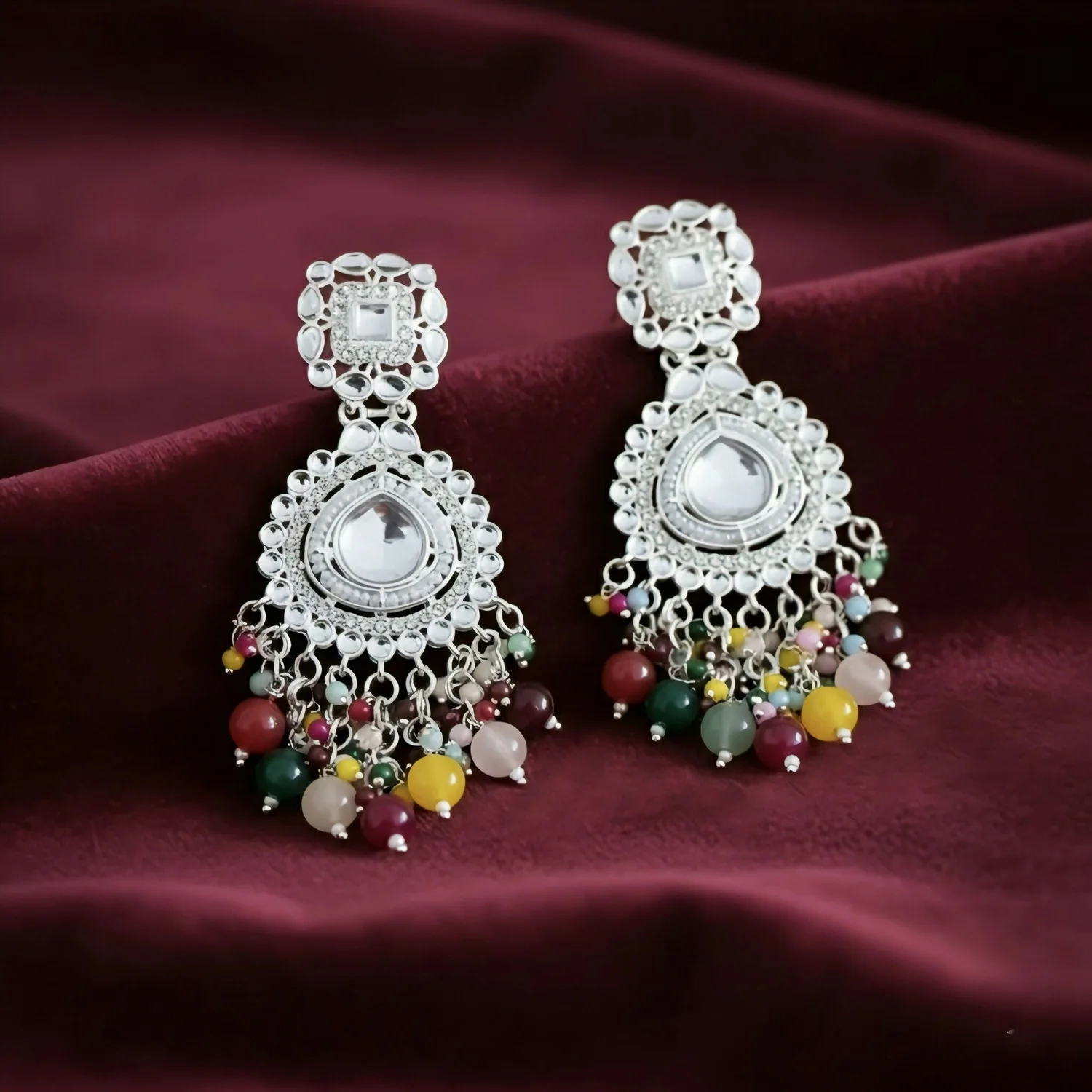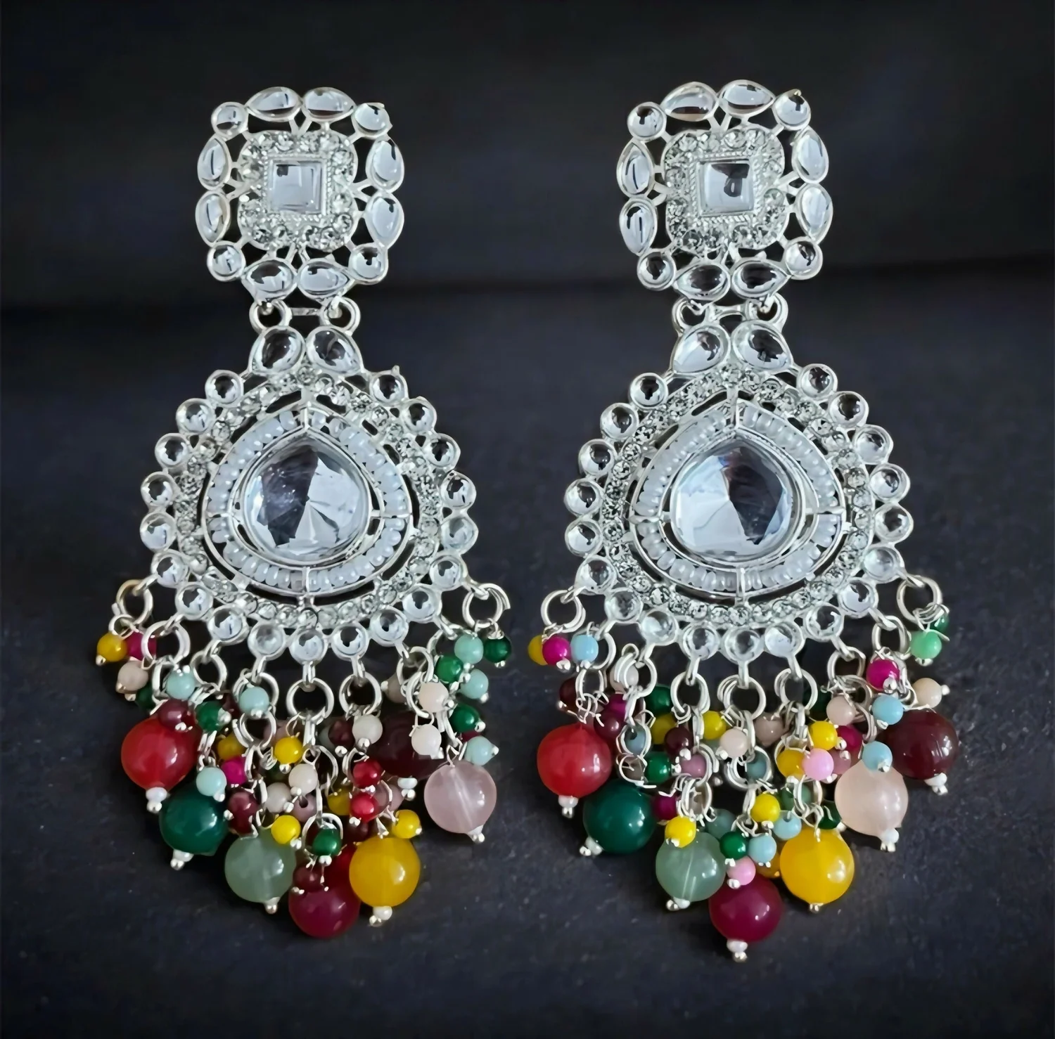 Be the first to review Oxidized Silver Chandbalis with Multi-Color Bead Drops earrings!